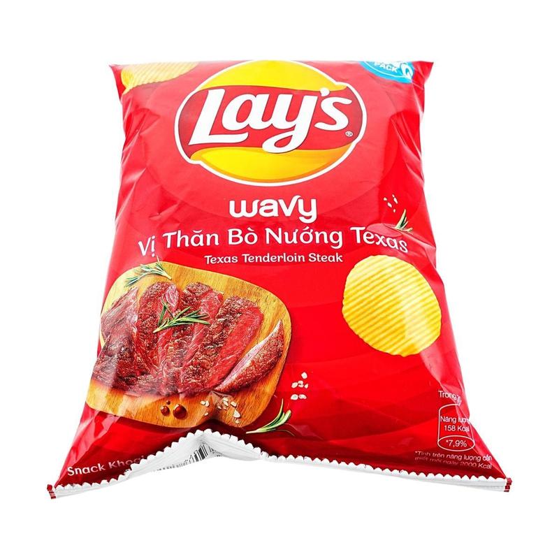 Vietnam Lay's Potato Chips - Texas Beef Steak Flavor (53g) - Rich Meaty Aroma, Savory Snack for TikTok