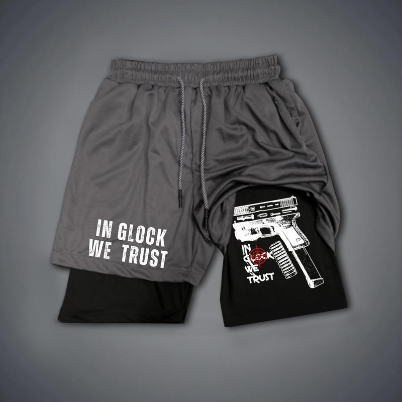 [Vibe] IN GLOCK WE TRUST 80s 90s summer men shorts for men jorts outfit men graphic shorts Double-layer sports shorts Comfortable short shorts summer