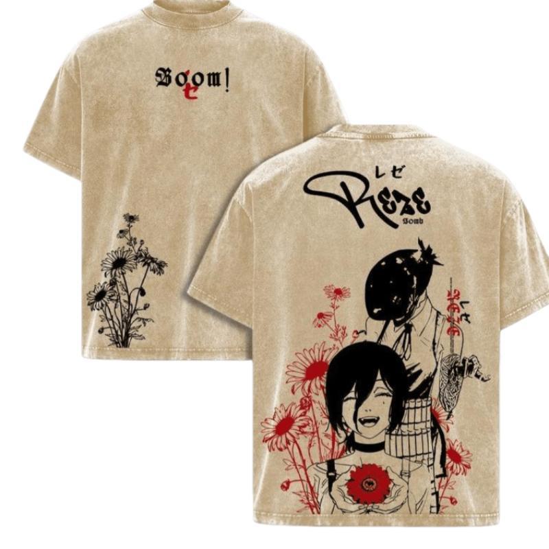 Reze Chainsaw Man Tee – Vintage Washed Oversized Heavy Cotton T-Shirt