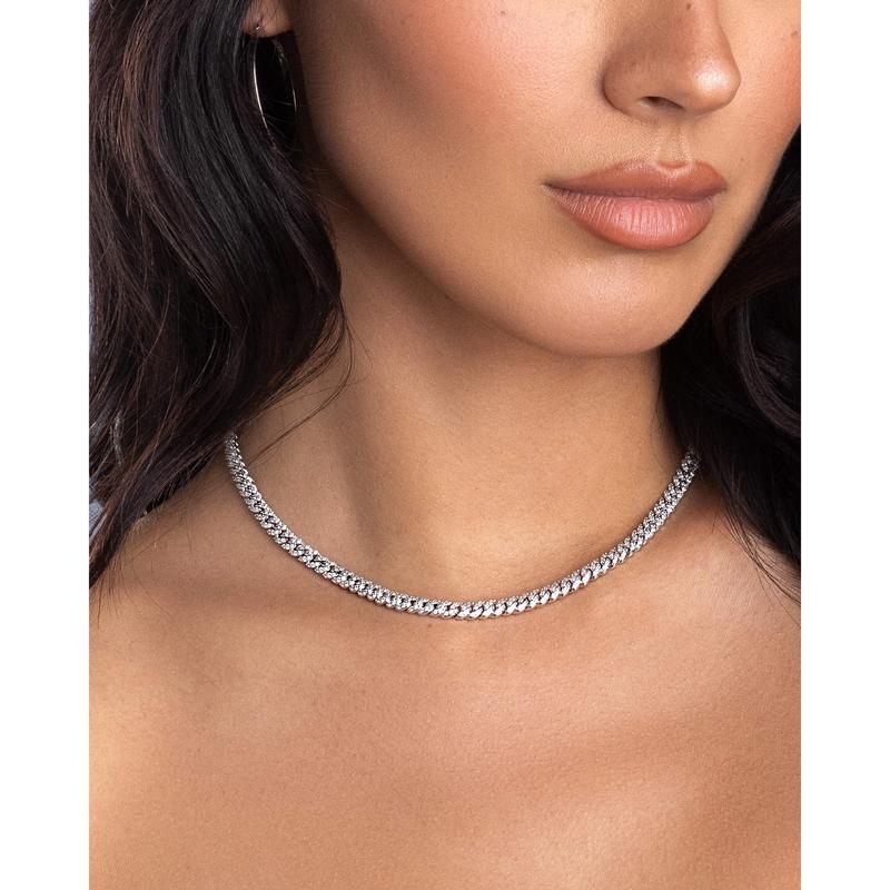 JAXXON Women's Iced Out Cuban Link Chain 8mm - Silver - Rhodium Bonded for Shine & Durability - Box Clasp