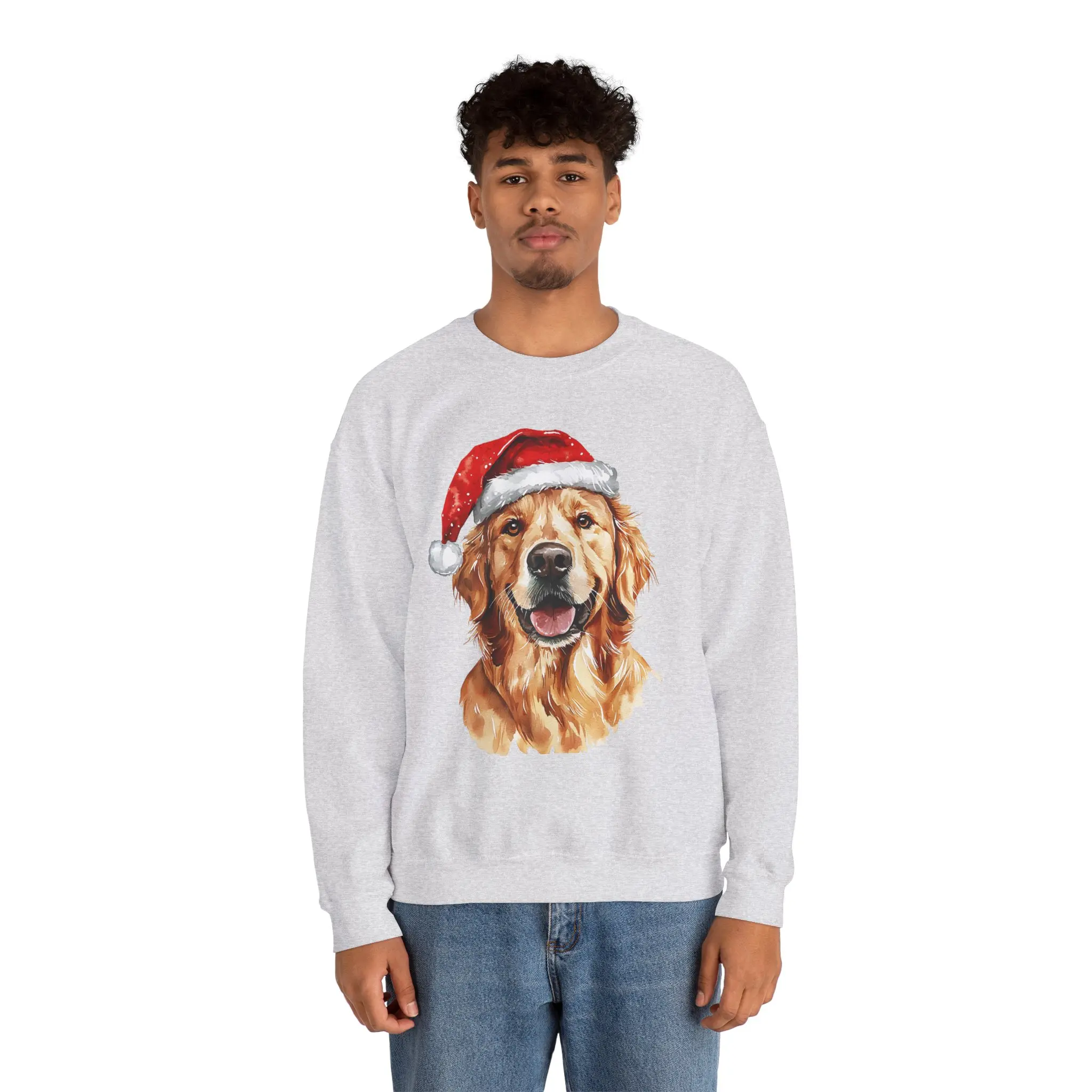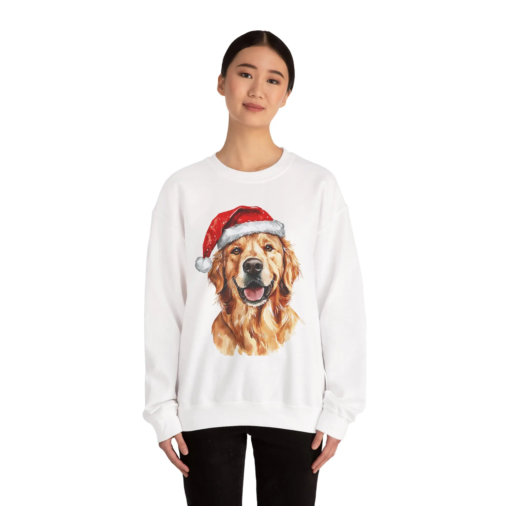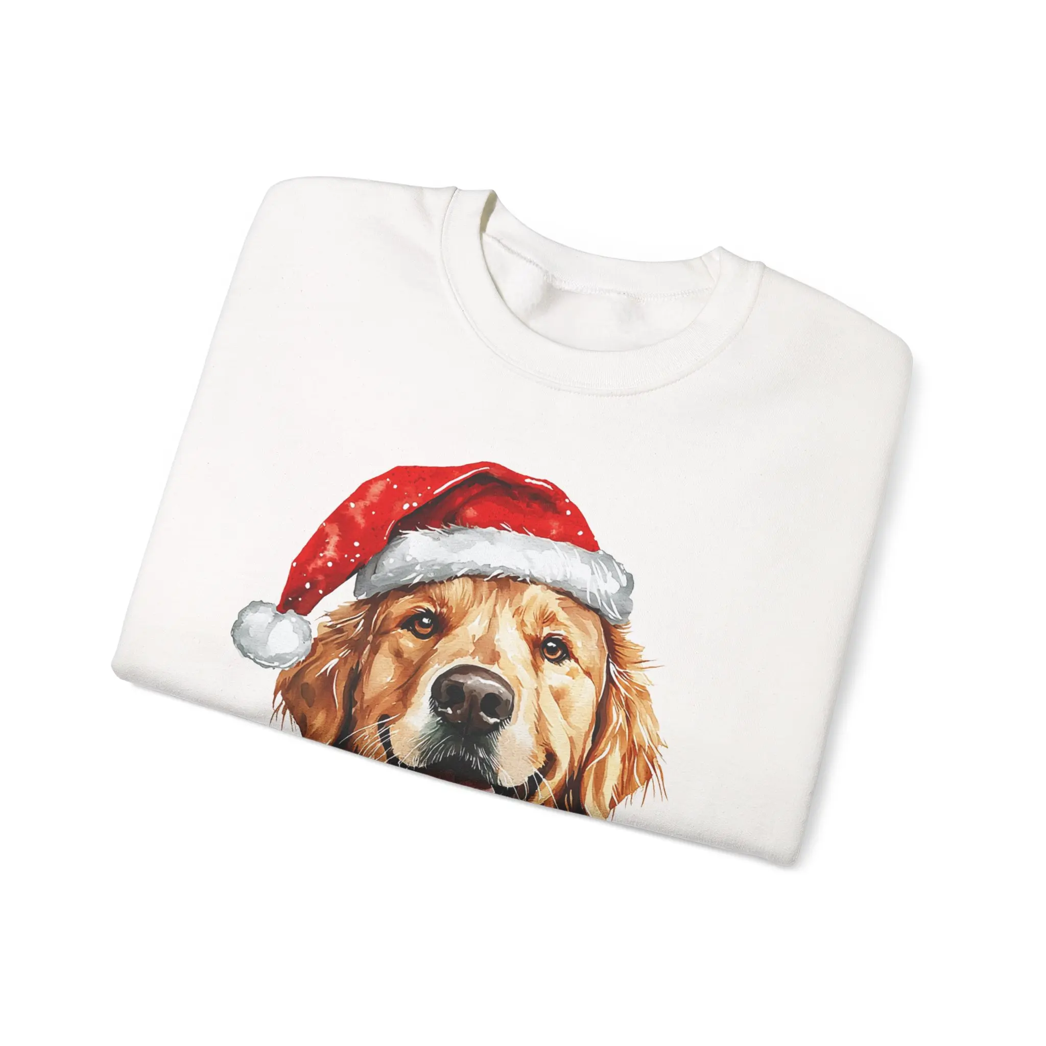 Whether you're baking cookies, walking your pup through winter wonderland, or just embracing peak cozy vibes — this soft, festive crewneck lets your love for Goldens shine bright. Featuring an adorable Golden Retriever rocking a Santa hat, this design is equal parts cheerful and charming.