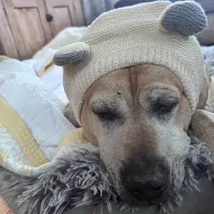 Sweetest little hat for the doggie out there! Super soft and easy to put on! Perfect for our Senior hound!