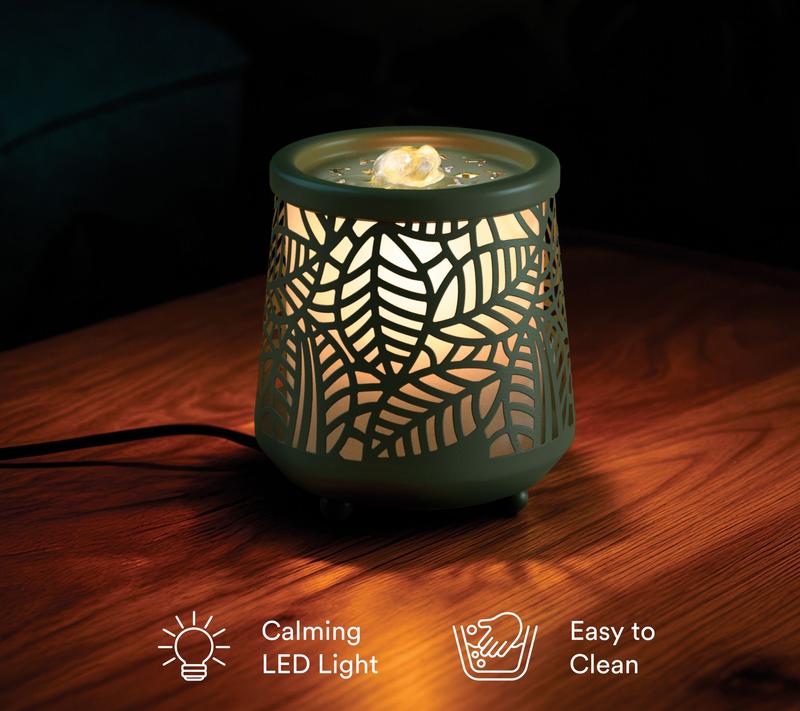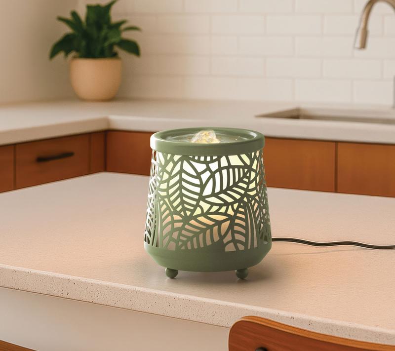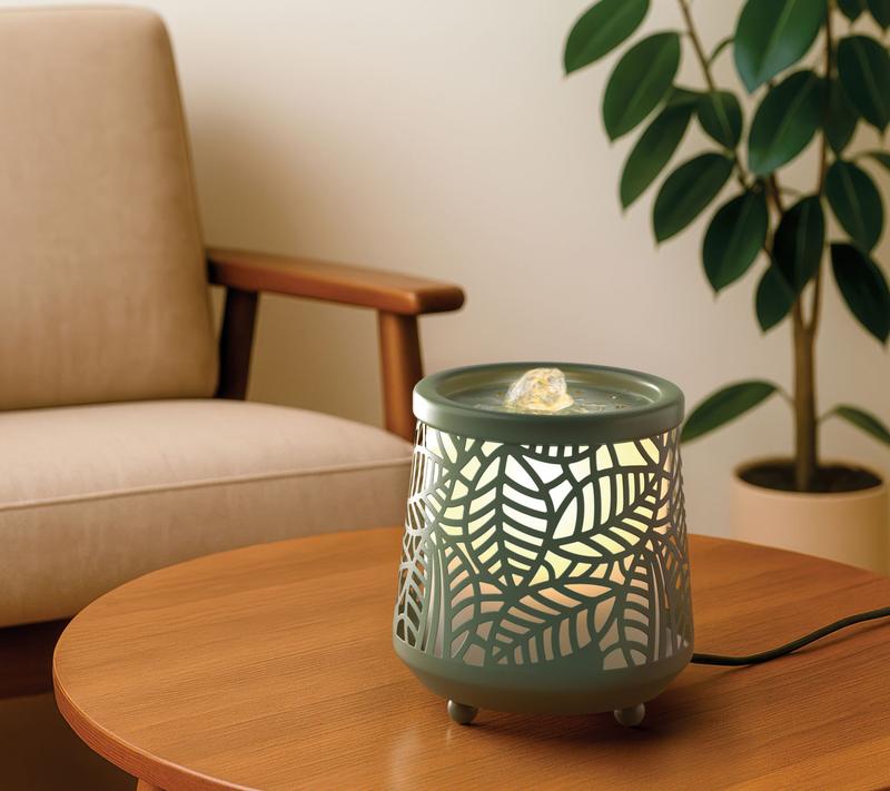 This is a very nice looking little bubbler, and perfect on my dresser. Heavy and well made except for the cheap plastic liner where the water goes. A bit noisier than expected. I do wish the light could be adjusted as it is bright, but overall a lovely ambiance. I def want the green leaf design!!