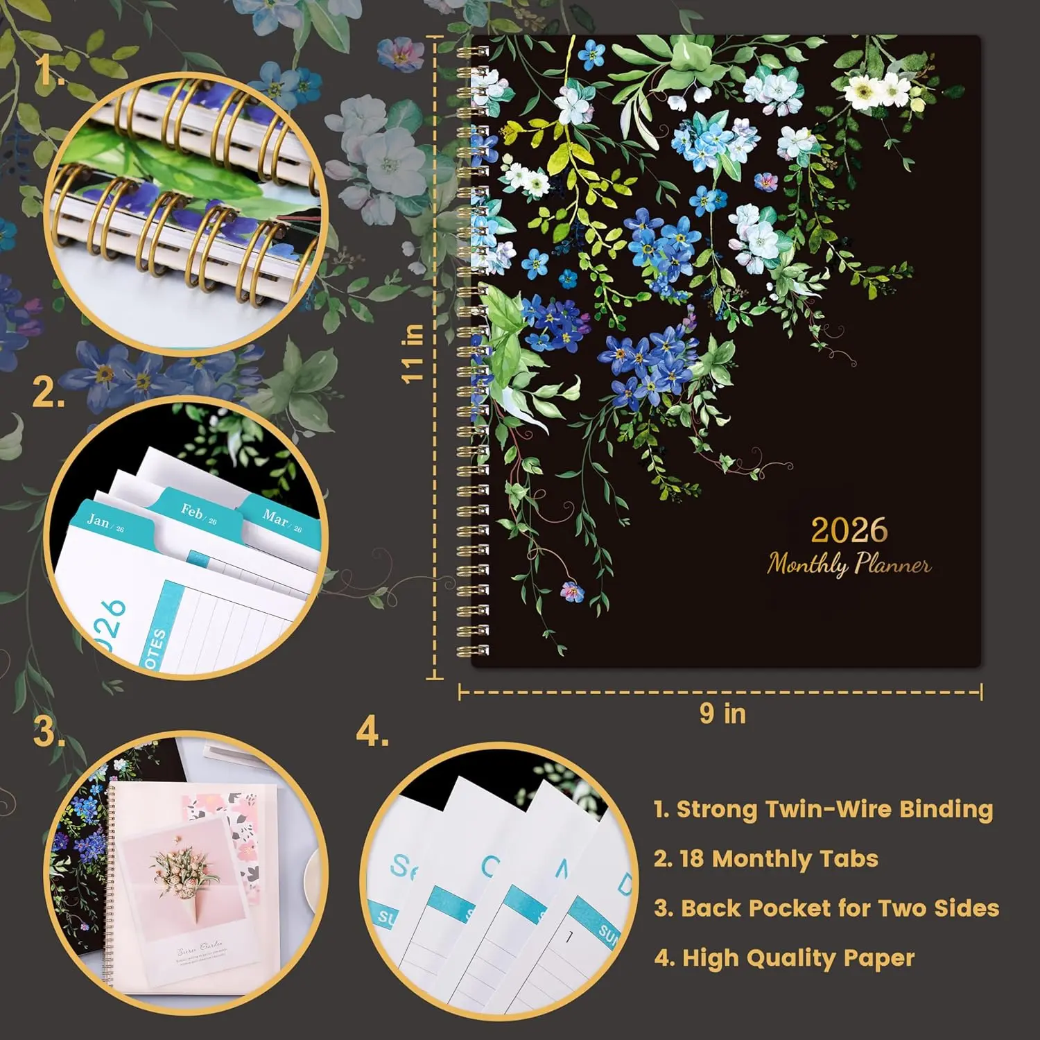 2026 Monthly Planner - 9'' x 11'', Large 12 Monthly Calendar/Planner 2026, Jan. 2026 - DEC. 2026, 2026 Calendar Planner with -wire Binding, Note Pages, Tabs, Inner Pocket, Thick Paper