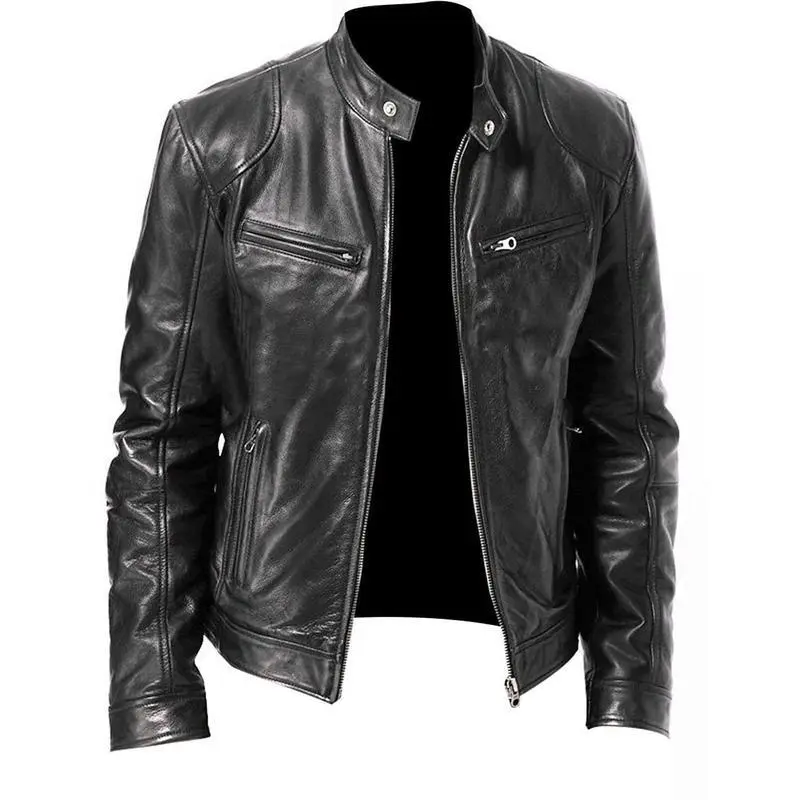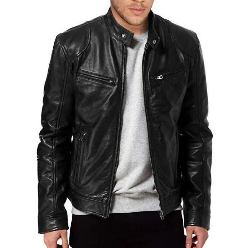 Men's Black Genuine Lambskin Leather Biker Jacket VINTAGE REAL BROWN MOTORCYCLE JACKETS FOR MEN(Raincoats)