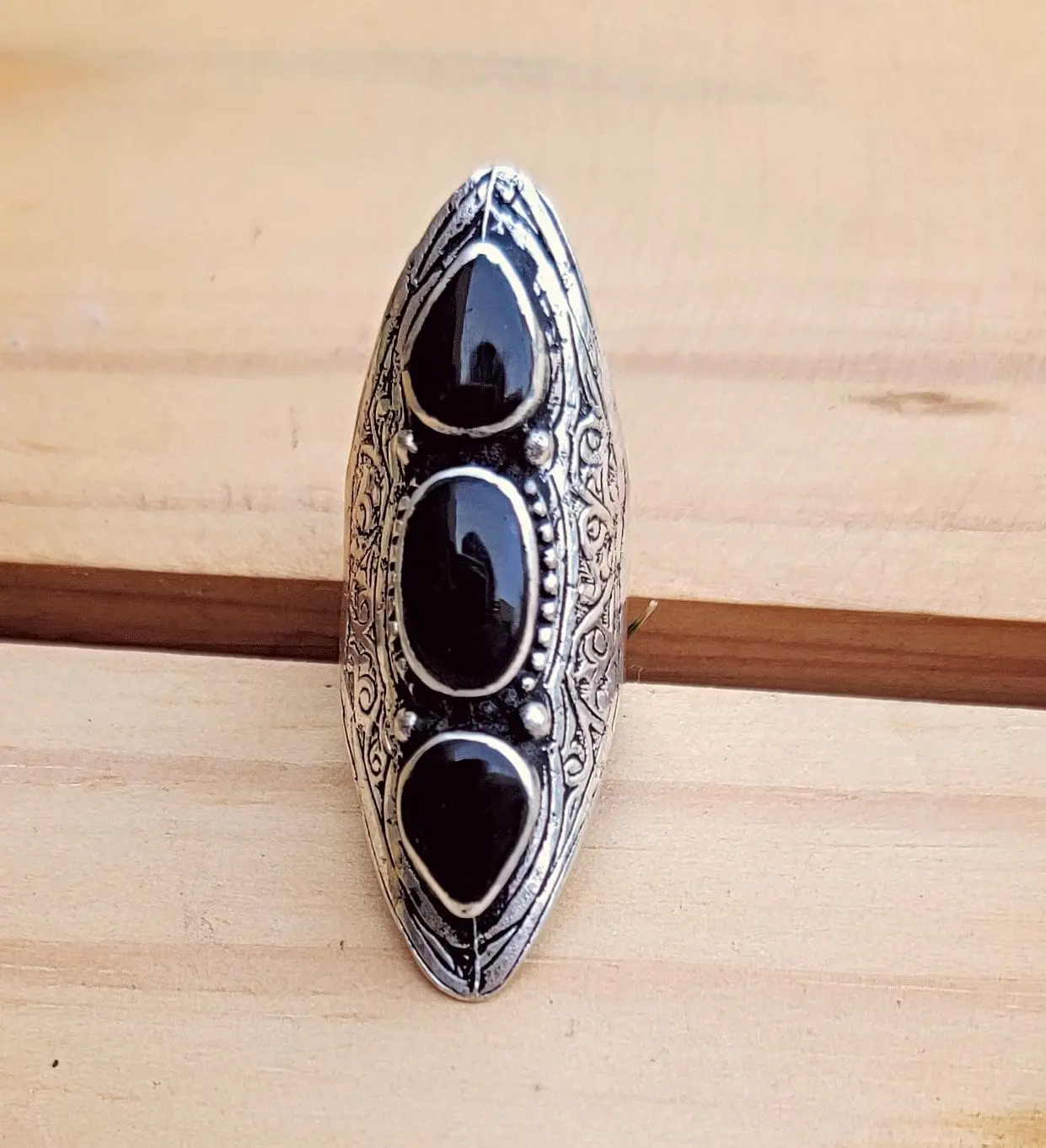 Black stone ring- Afghan jewelry- Saddle ring. Aqeeq statement ring.Ethnic Stone rings. Bohemian Afghan ring. Gypsy Nomadic Ring- Aqiq ring