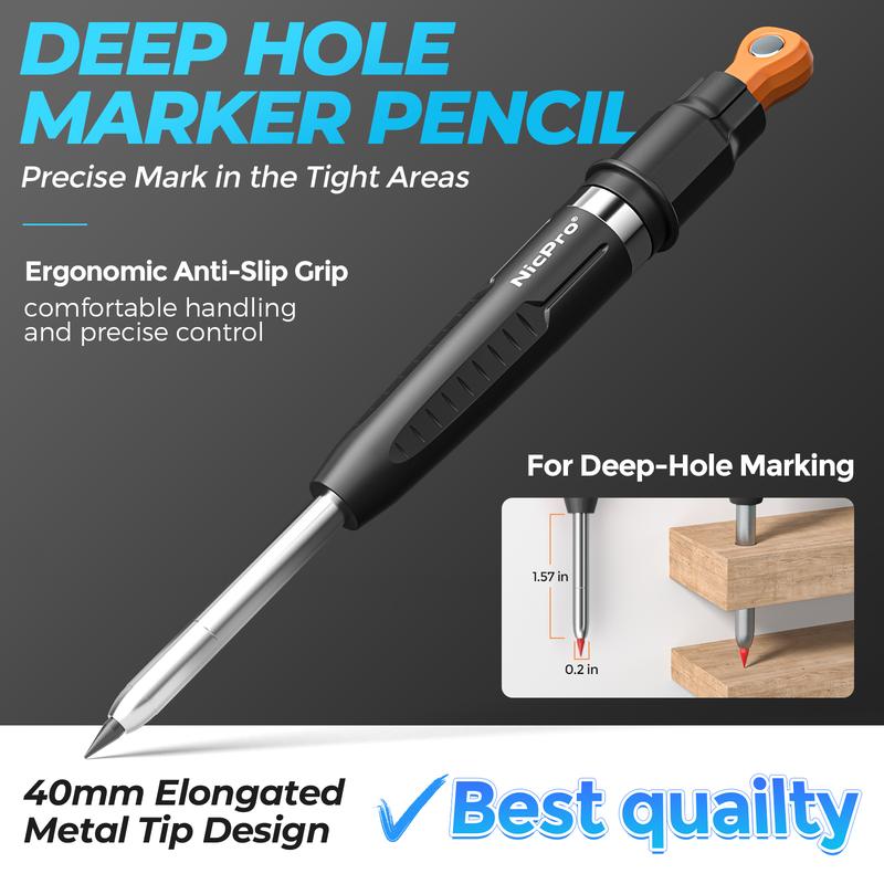 The Nicpro Carpenter Pencils are perfect for construction and woodworking. This set includes a 2.8mm mechanical pencil and 10 refill pens. The deep hole marker ensures precise marking. 📏