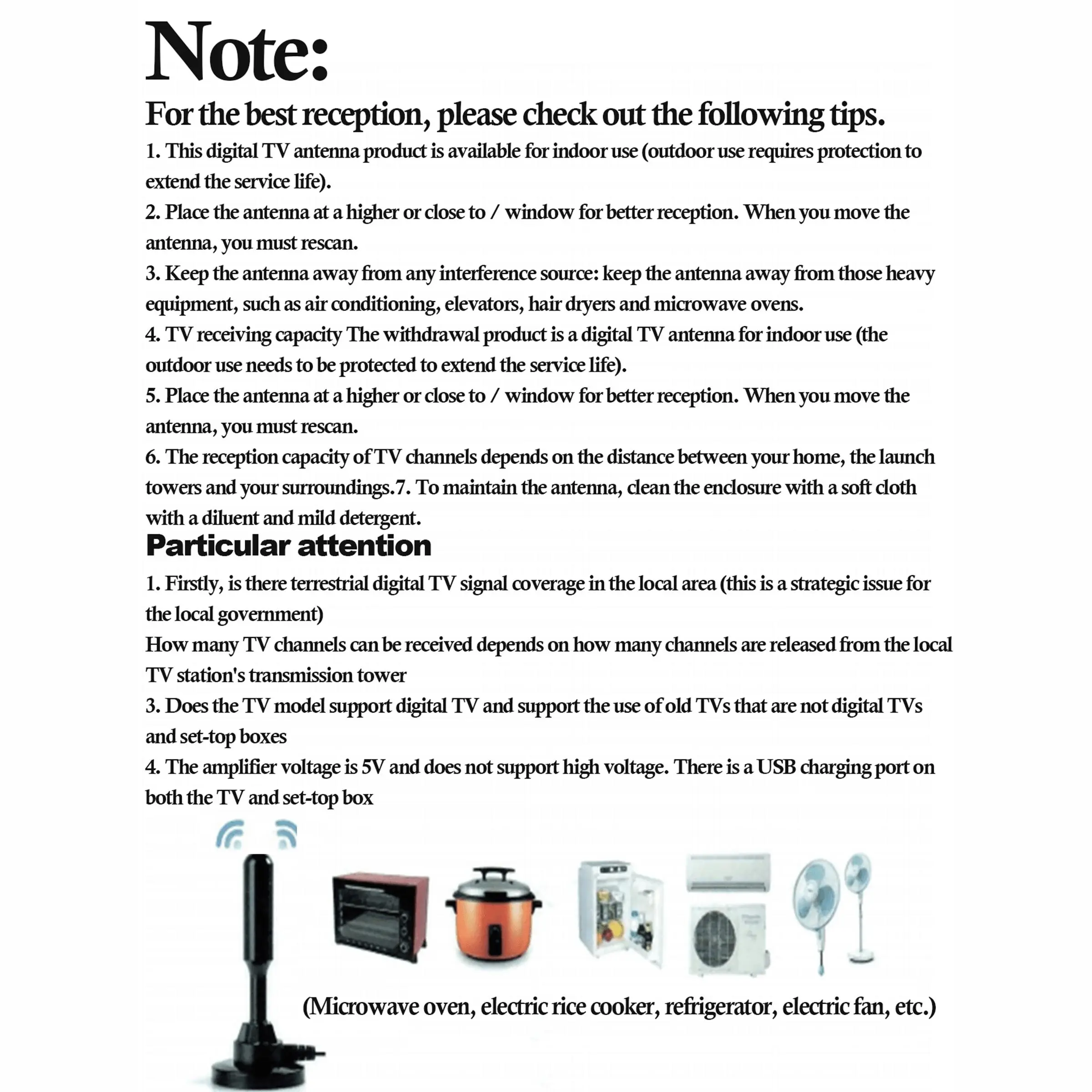 4. Receiving Frequency Range: VHF (172-240 MHz), UHF (470-860 MHz)