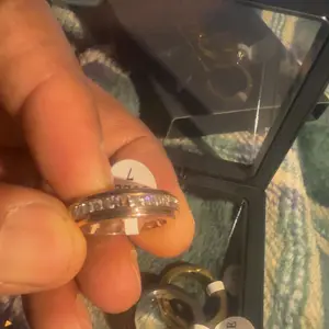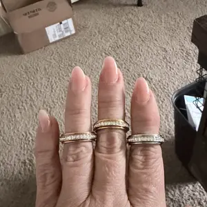 Stones are much smaller than pictured. Otherwise it’s nice. I wish I could have ordered a set of 3 in different sizes. Pictured is silver size 8