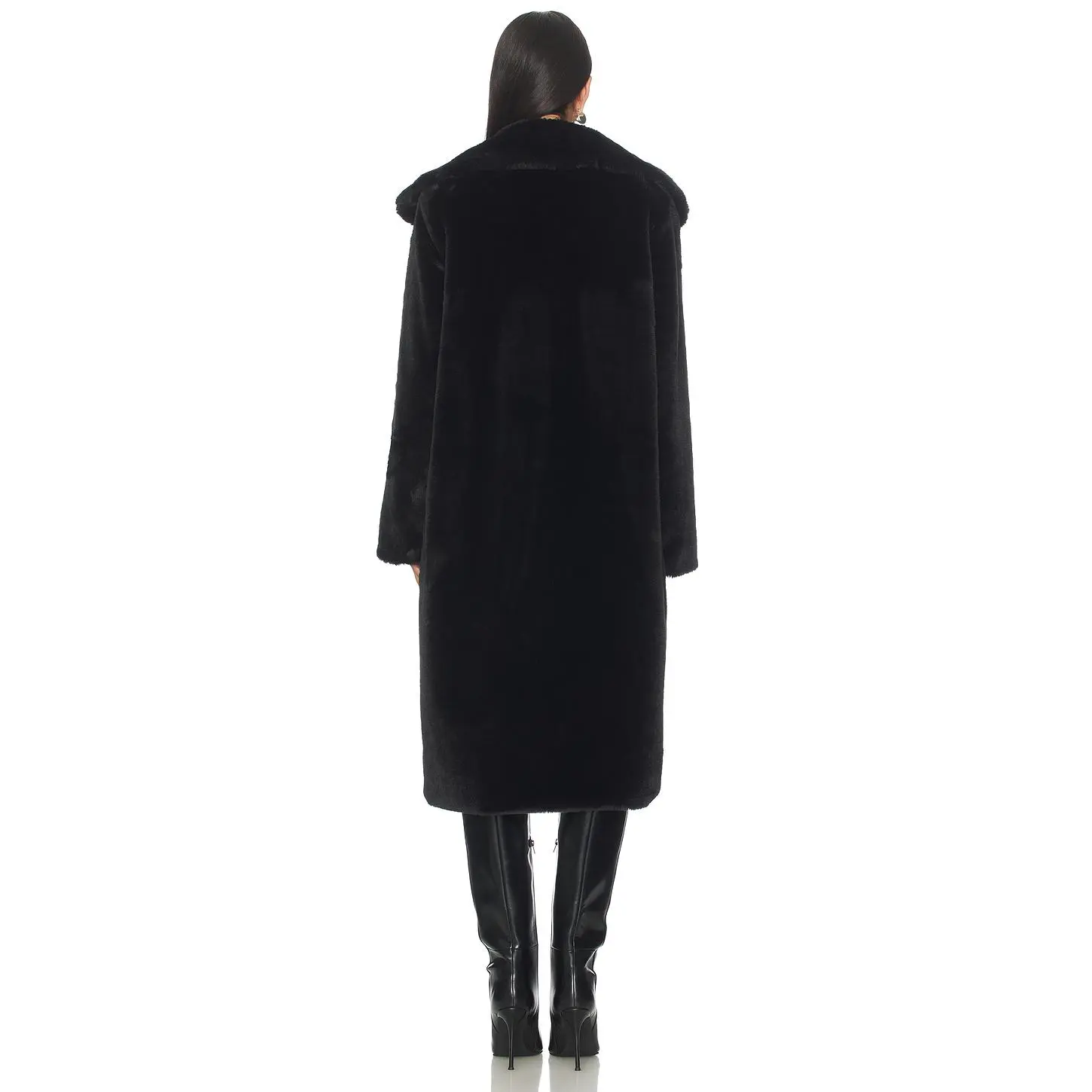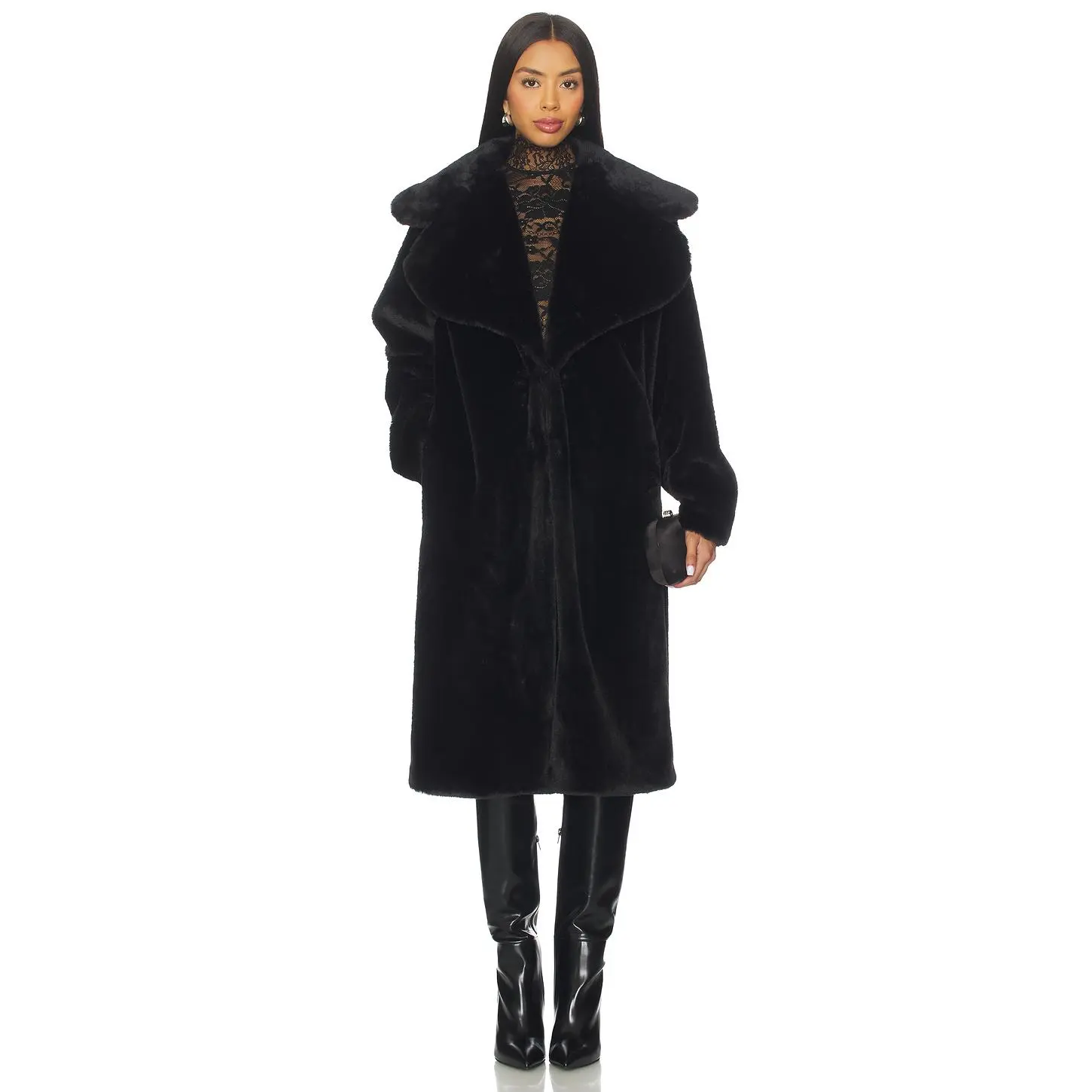5. superdown Willow Faux Fur Long Coat in Black