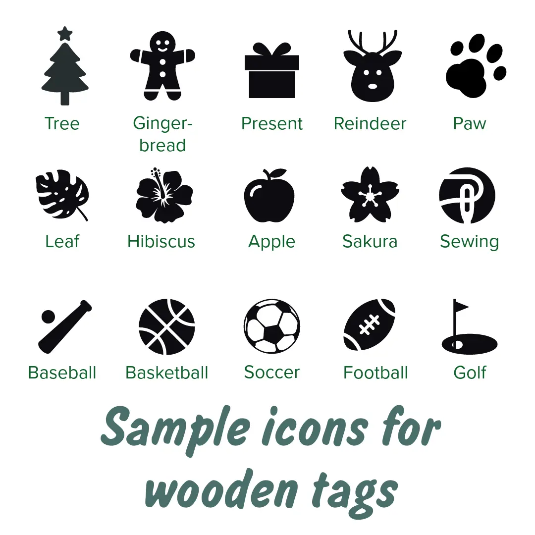 Wood tags - please enter the name, the wood color, font number and font color. (e.g., "Santa", ruby, font 1 white, reindeer) Japanese characters available. Please message us for details and additional icons.