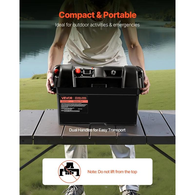 👜 Portable Design: The marine battery case has dual handles for easy portability. It is ideal for outdoor activities, emergencies, boating, camping, land activities, and solar power storage.