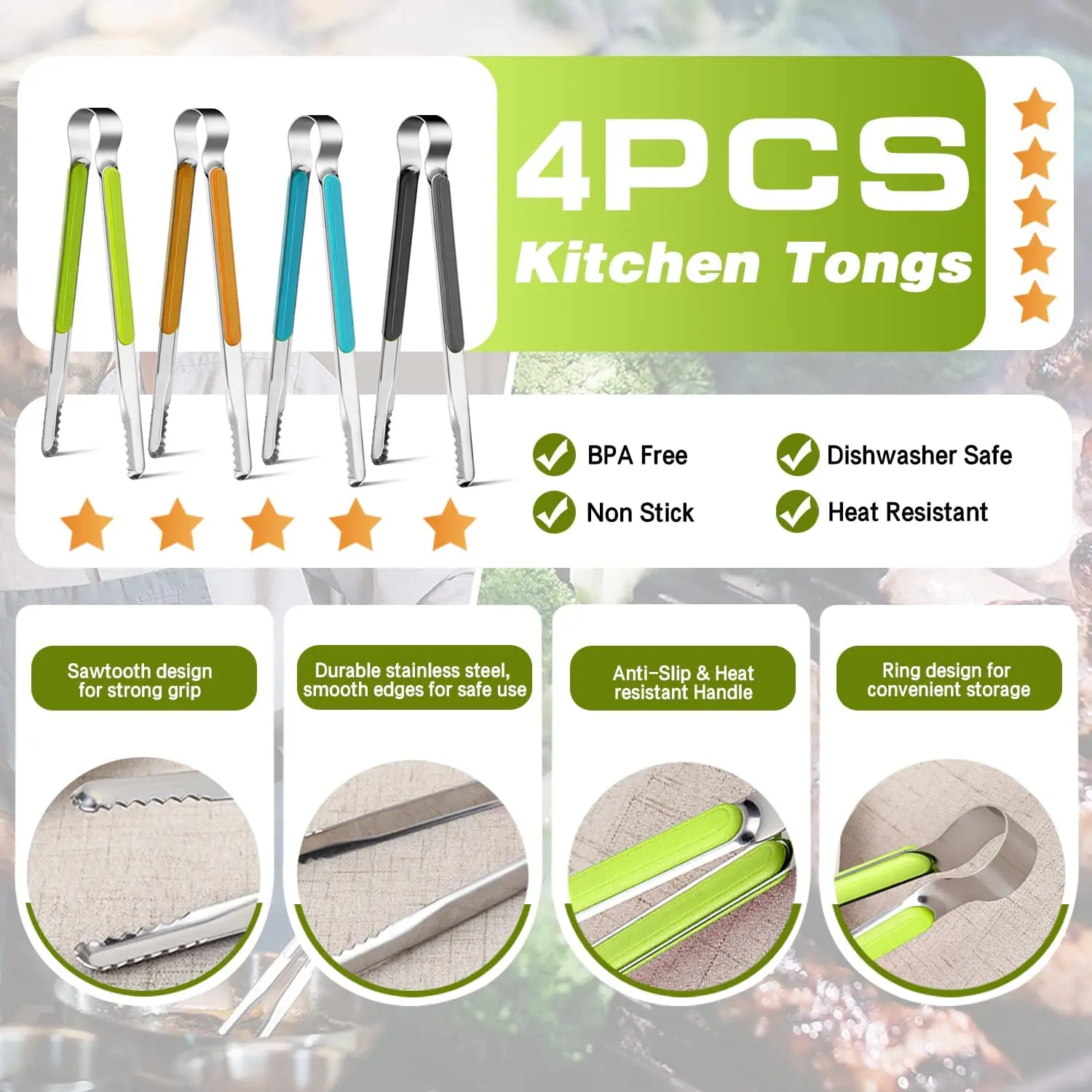 ·Package Including: 4 pack 10 inch kitchen tongs.