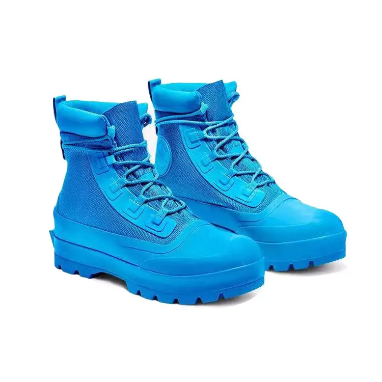 The AMBUSH x Converse Chuck Taylor All Star Duck Boot High 'Blithe' is a unisex weather-ready boot that is perfect for any outdoor activity. With its electric blue finish and rubberized overlays, this boot is both stylish and functional. The rubber sole unit with exaggerated outdoor lugs provides traction and stability, while the woven poly-cotton textile upper keeps your feet comfortable and dry. The back heel is printed with the shoe size and Ambush logo, making this boot both stylish and practical.
