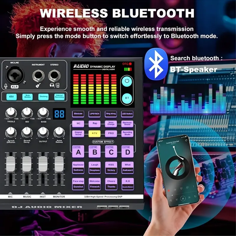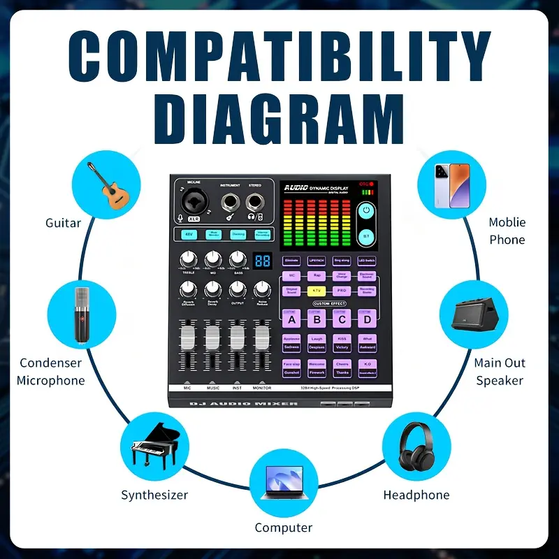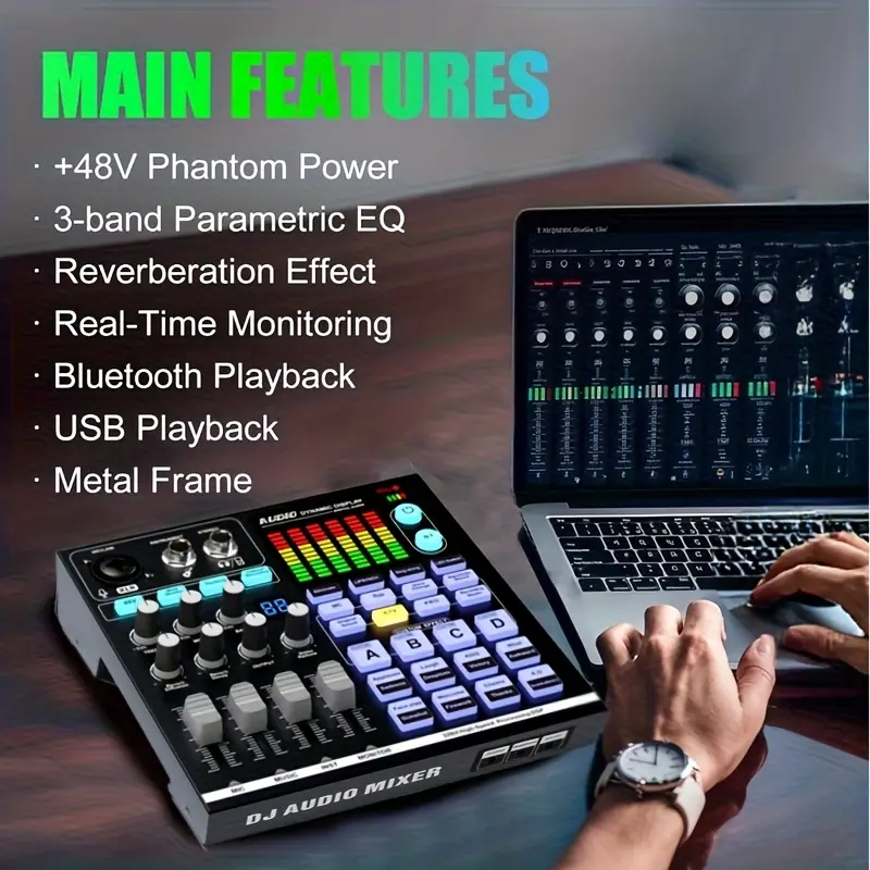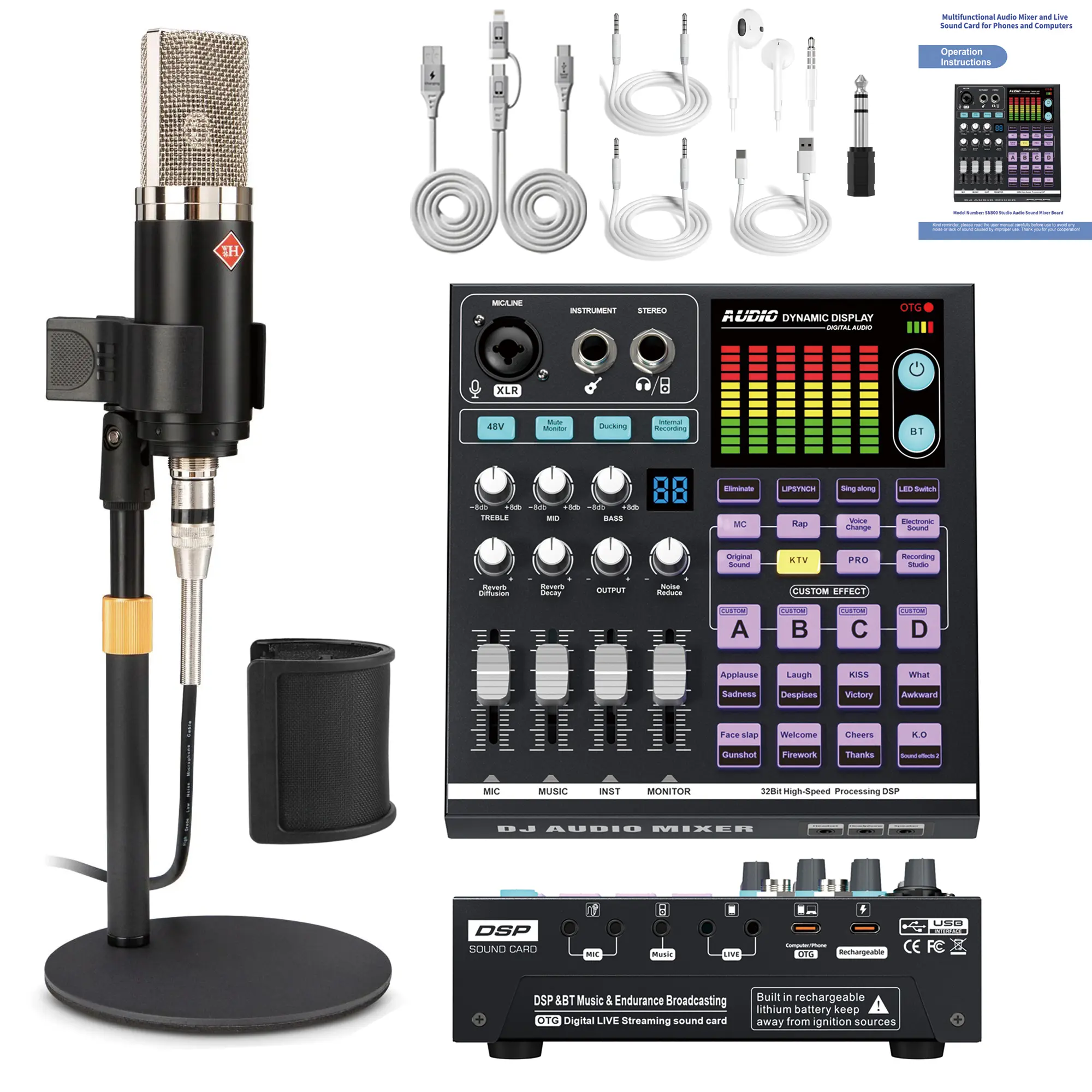 Professional Podcast Microphone Kit SN-800, Condenser Mic with Live Sound Card, Multi-functional Audio Mixer, Suitable for PC/Smartphone Recording & Broadcasting, Gaming DJ Mixer, Black, 3.5mm Jack, USB Charging, ABS Resin Body, Rechargeable Battery, Wire
