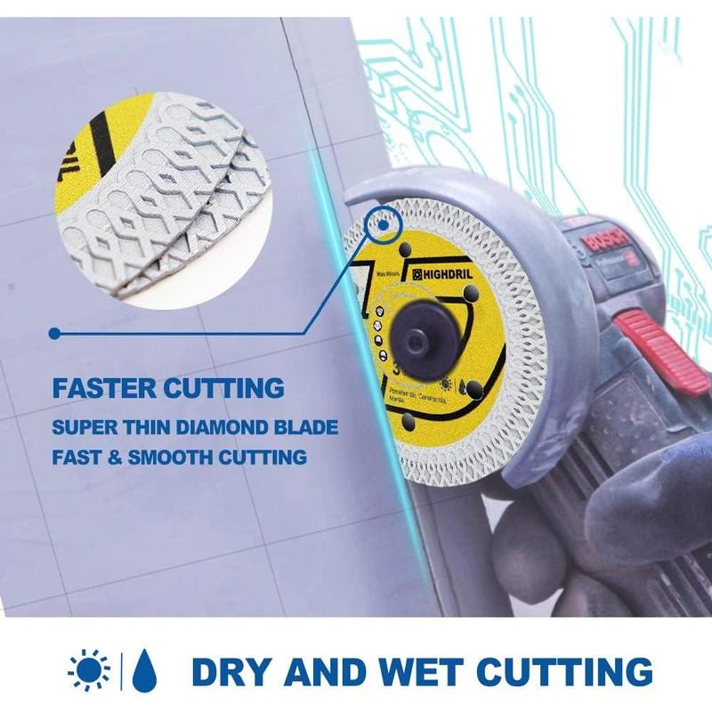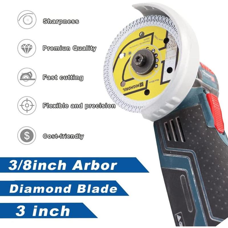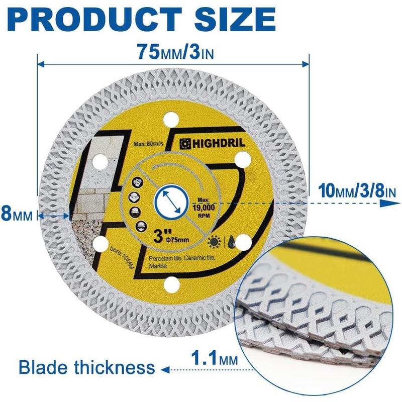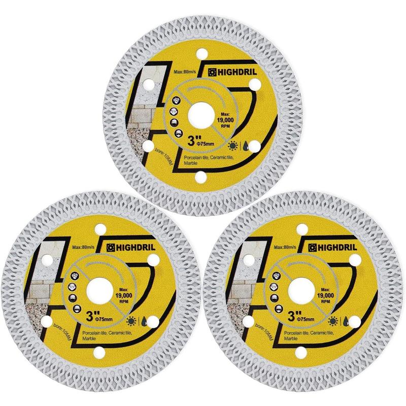 5. 3PCS Tile Diamond Blade,3In/75mm x Arbor 3/8Inch/10mm X Mesh for Ceramic,Hard Porcelain,Glazed Tiles Marble Dry Cutting disc(3PCS)
