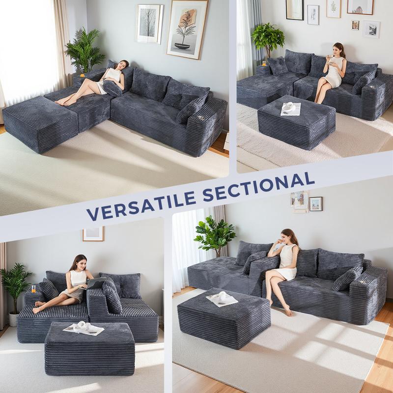 ·Spacious U-Shaped Comfort: Generously sized with a deep, enveloping U layout, this modular sofa provides ample space for the whole family to lounge together. Stretch out, curl up, or lie down — perfect for entertaining guests or enjoying an afternoon nap. The oversized design brings a luxurious sense of scale and relaxation to your living room