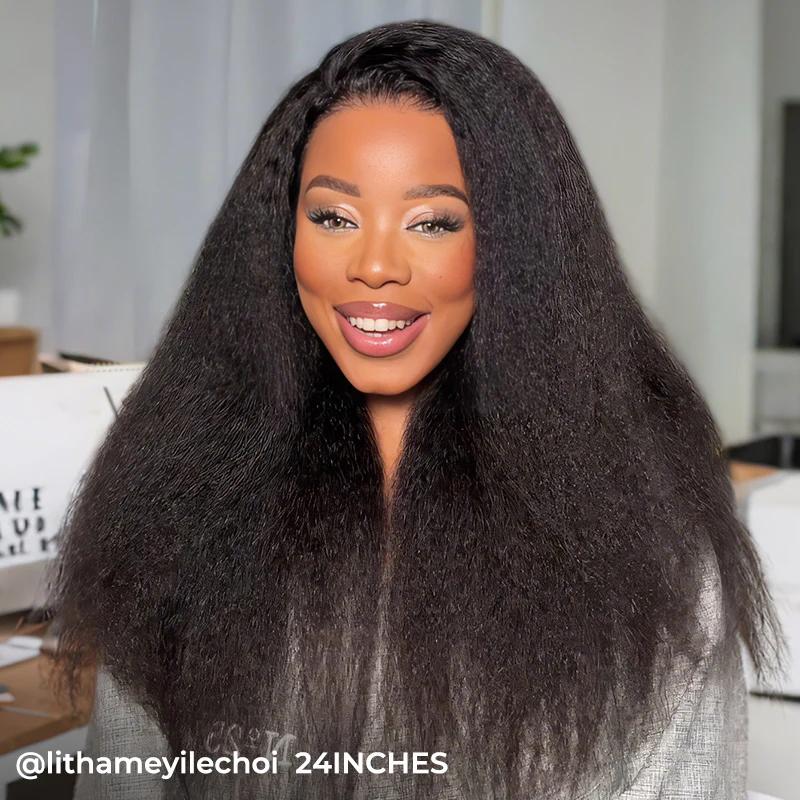 5. ISEE HAIR Wear Go 360 Lace Frontal Kinky Straight Glueless Wig Pre-Bleached Knots Invisi Draw-strings Glueless Human Hair Wigs Full Frontal Combs #TikTokShopHolidayHaul