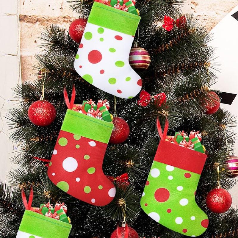5. Christmas Clearance Sale Christmas Gifts 24 Pcs Mini Christmas Stockings 6" Cute Dot Red and Green Xmas Sock for Fireplace Hanging, Stockings Holiday Party Home Christmas Decor Christmas Stuffer Gift Idea for Family Friends Burr Basket Gift Xmas Present