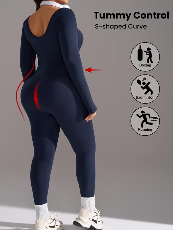 Women's Plus Size Slimming Long Sleeve Jumpsuit, Waist Cinching Yoga Pants, Casual Fall & Winter Sportswear, Stretch Skin-Friendly Fabric #bodysuitshapewear #plussizesweatsuit #plussizeswimsuit #bodysuitobsessed #plussizeoutfit #shapewearwithbra #longsleevebodysuit #plussizeswim #flatteringloungewear #thermaljumpsuit