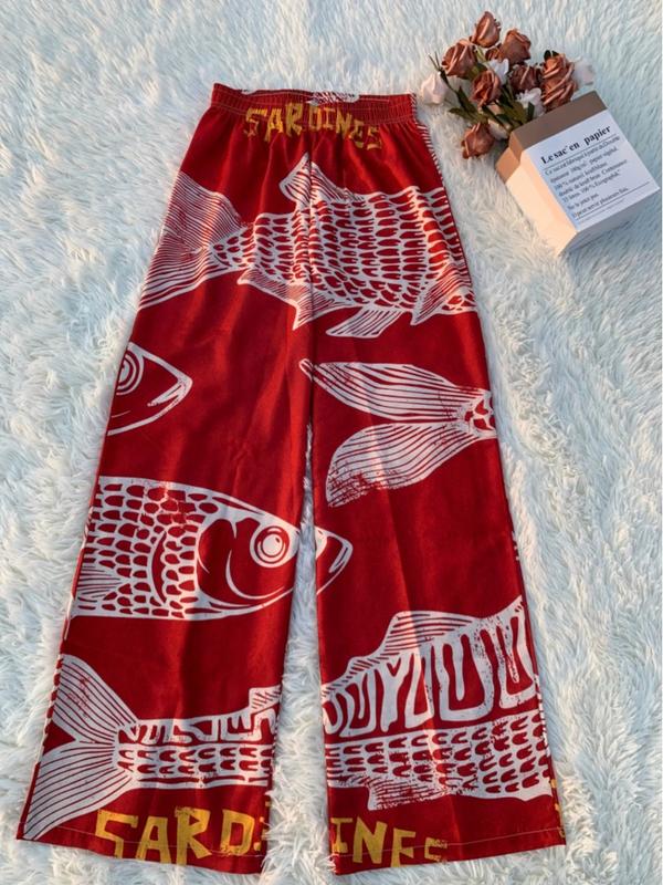 Women's Retro Nautical-Style Sardine Print Wide-Leg Pants