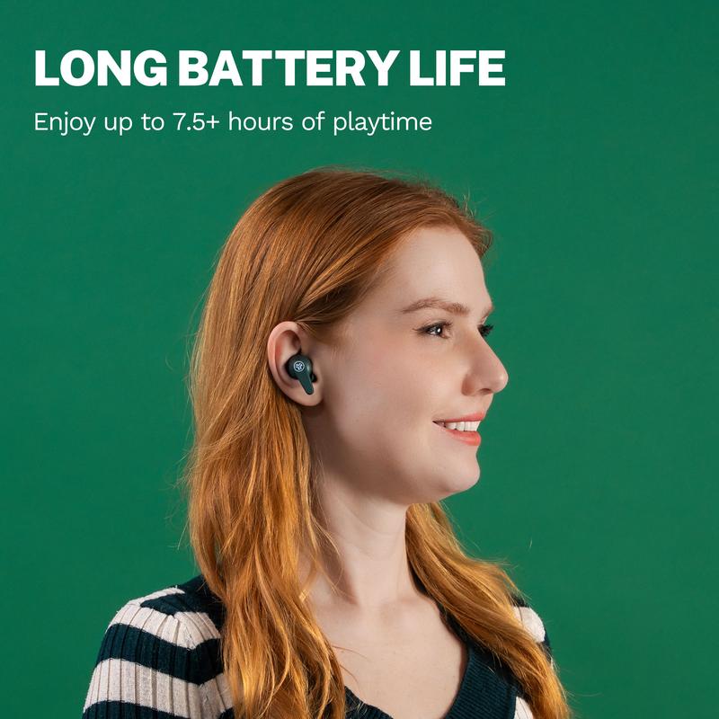 Enjoy up to 7.5+ hours of playtime on a single charge for each earbud, and a total of 26+ hours of playtime with the case. Plus, conveniently recharge the case with its integrated USB-C charging cable, allowing you to get an hour of playtime with just 10 minutes of charging.