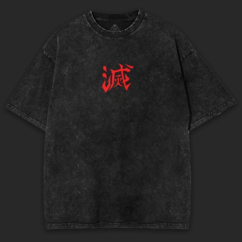 Yoriichi Tsugikuni Demon Slayer Oversized Washed Vintage Tee – Sun Breathing Flame Graphic Cotton Shirt | Anime Collector Drop