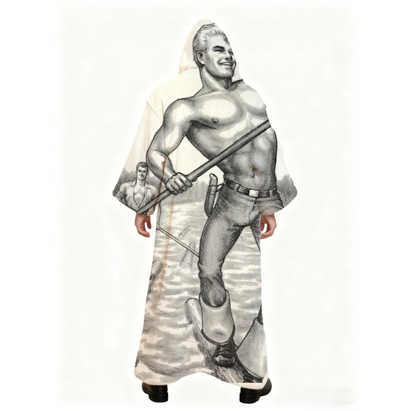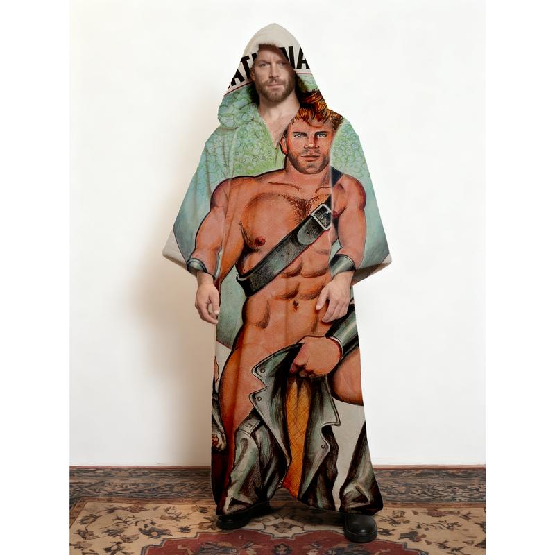 Men's Winter Casual Artist Hooded Kaftan Art Print Robe