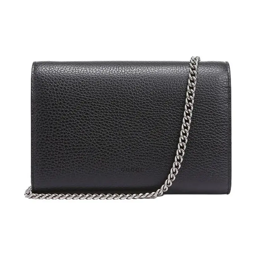 Pre-owned GUCCI leather Crossbody Bags Dionysus Double Tiger Head Buckle Chain Wallet/Crossbody Bag, Leather, Mini Shoulder Bag Black