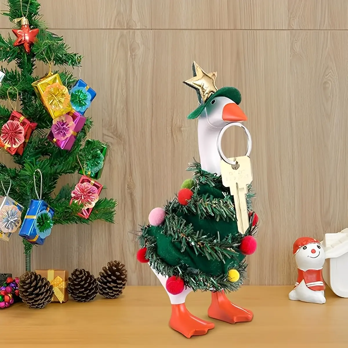 This is a Christmas tree mini-themed costume set designed specifically for your 7-inch magnetic keychain goose statue. The set includes a colorful goose costume (excluding the 7-inch desktop goose), giving your keychain goose a festive makeover and ensuring it stands out as the center of attention this Christmas season.