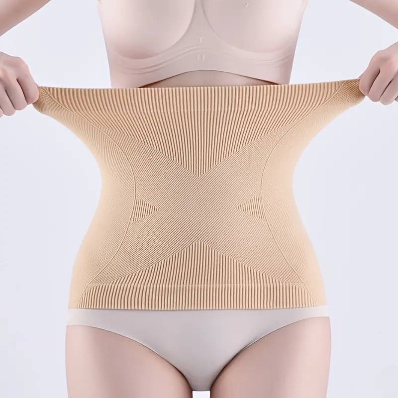 Large-sized abdominal support belt for women, four-season elastic waist cinching belt - suitable for postpartum use and everyday wear | Breathable, seamless, and invisible undergarment belt, available in black and light beige (M-2XL)