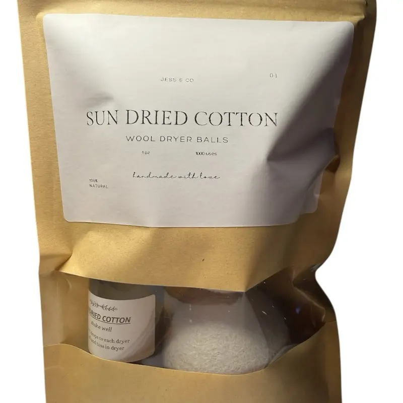 Sun Dried Cotton Wool Dryer Balls Kit with 2oz Refill for Gentle Fabric Care