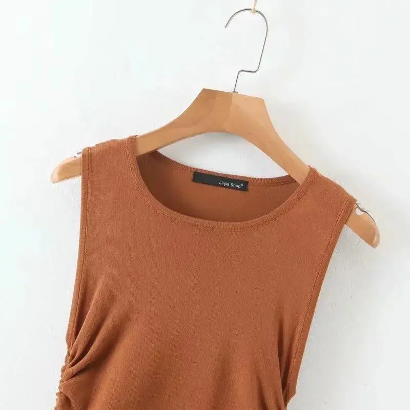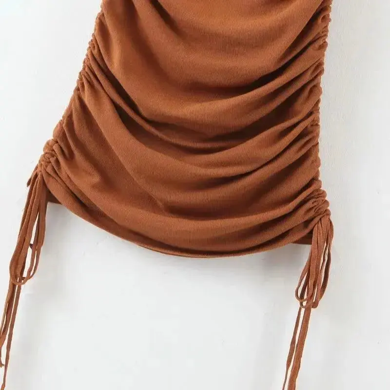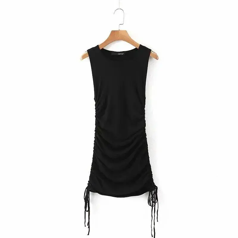 Chic and form fitting, our Pamela racerbeck side ruched mini dress is a comfy and cool dress that's perfect for going on a shopping spree or just grabbing lunch with friends. This ribbed mini dress, complete with ribbed material, a crew neckline, and adjustable ruching with ties at sides, gives you a figure-hugging silhouette.