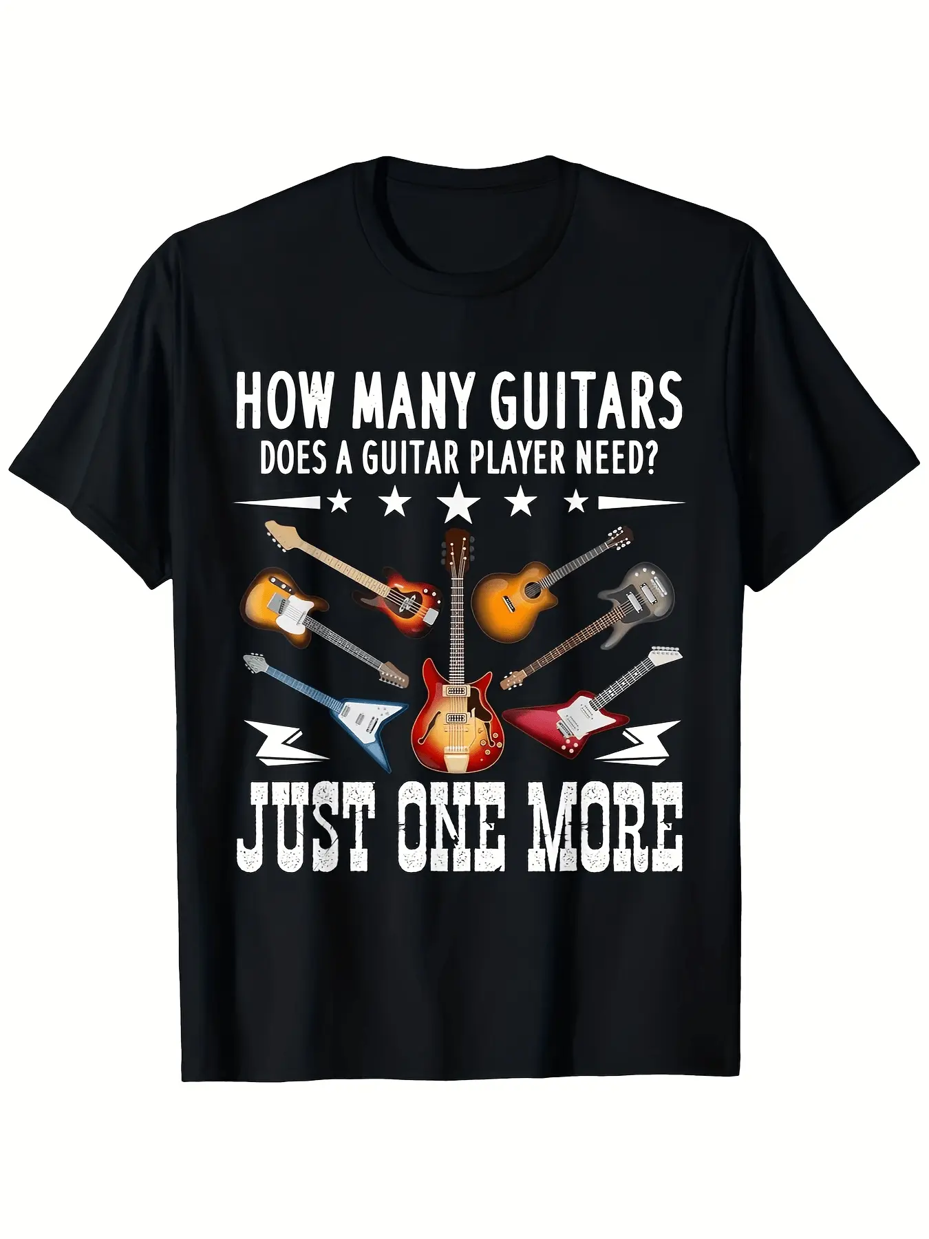 Humorous Men's Black Guitarist T Shirt with Guitar Player Quote Round Neck Short Sleeve All Season Music Tee
