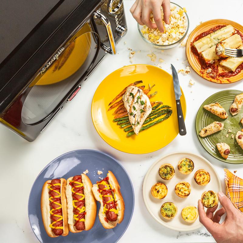 ·Convenient Cooking Controls: 12 pre-programmed cooking settings, delay timer and express cooking provide options for the optimal heating of popular foods like popcorn, pizza, potatoes, veggies and more