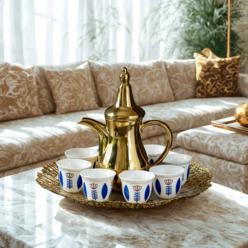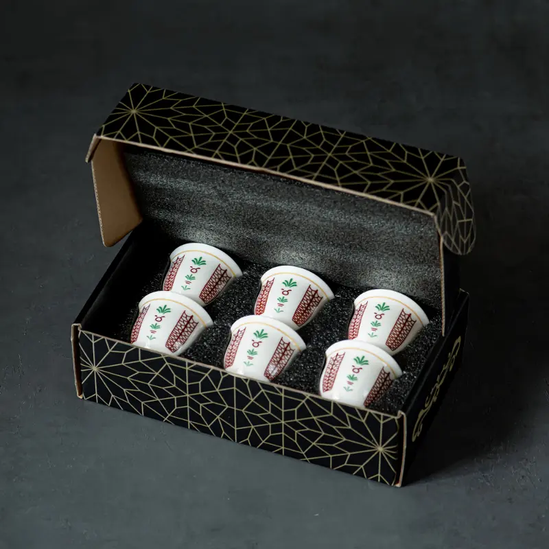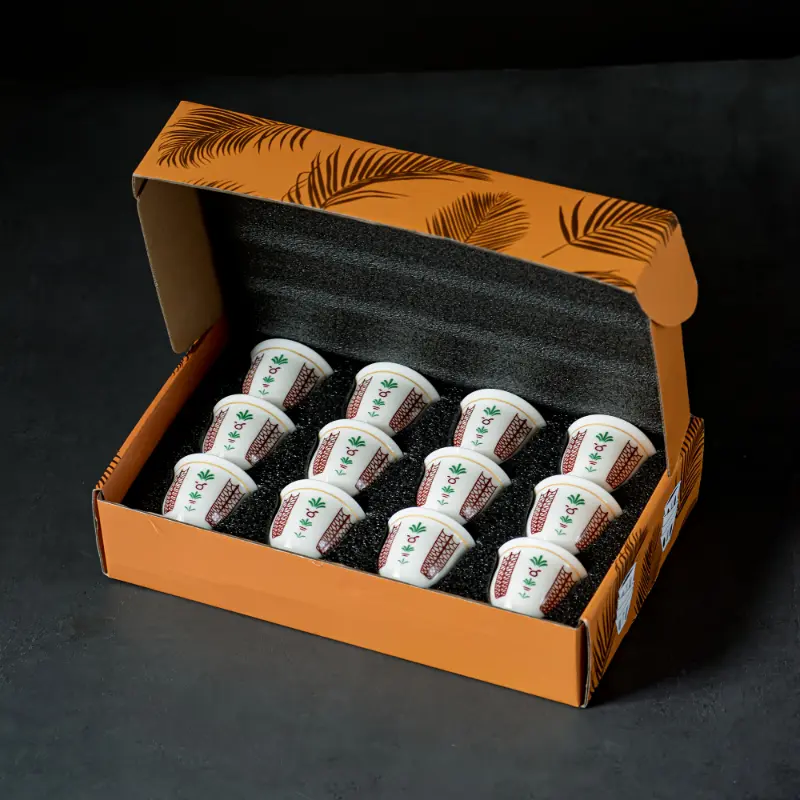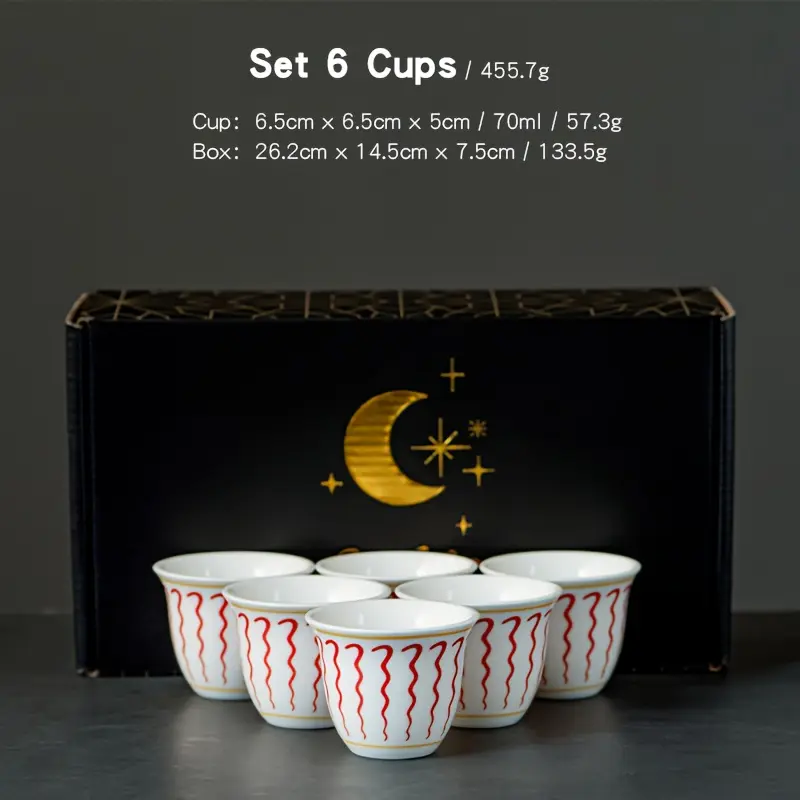 6/12pcs Ceramic Arabic Cawa Cups Set with Gift Box, Eid al-Adha Gahwa Espresso Shot Cups, Palm Tree/Tulip Design Coffee Cups