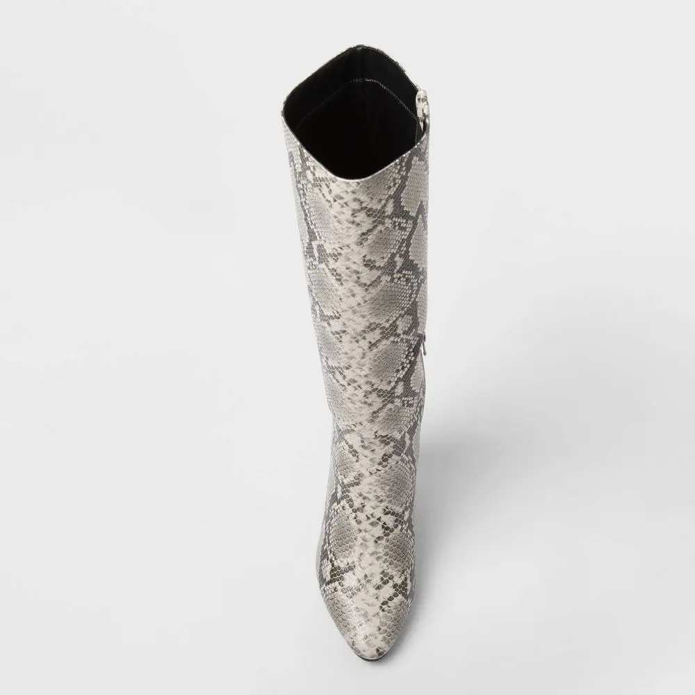 Stay on top of the fashion game with these Evangeline Boots with Memory Foam Insole from A New Day. These almond-toe boots are enhanced by textured detailing on the upper for chic style. The memory foam insole construction makes for comfortable wear, and they're also designed with a three-inch block heel to add height to your look. Plus, the knee-length boots come with side zipper closure for quick and easy on and off.