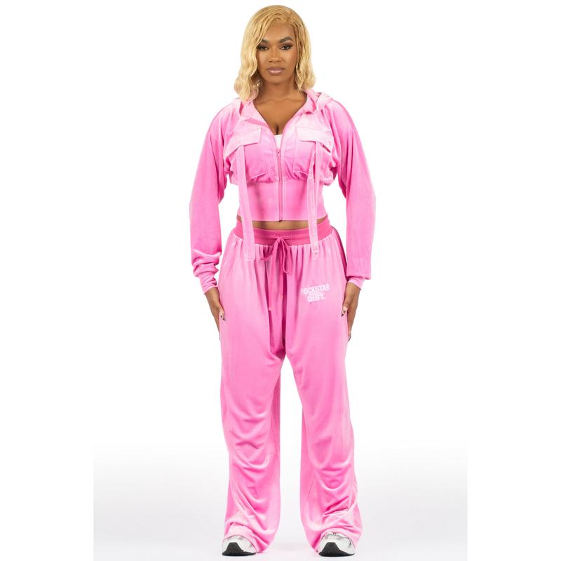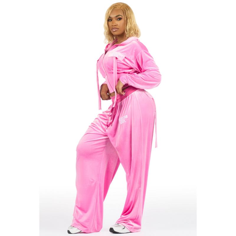 Jalisa Light Pink Cargo Velour Baggy Fit Track Set