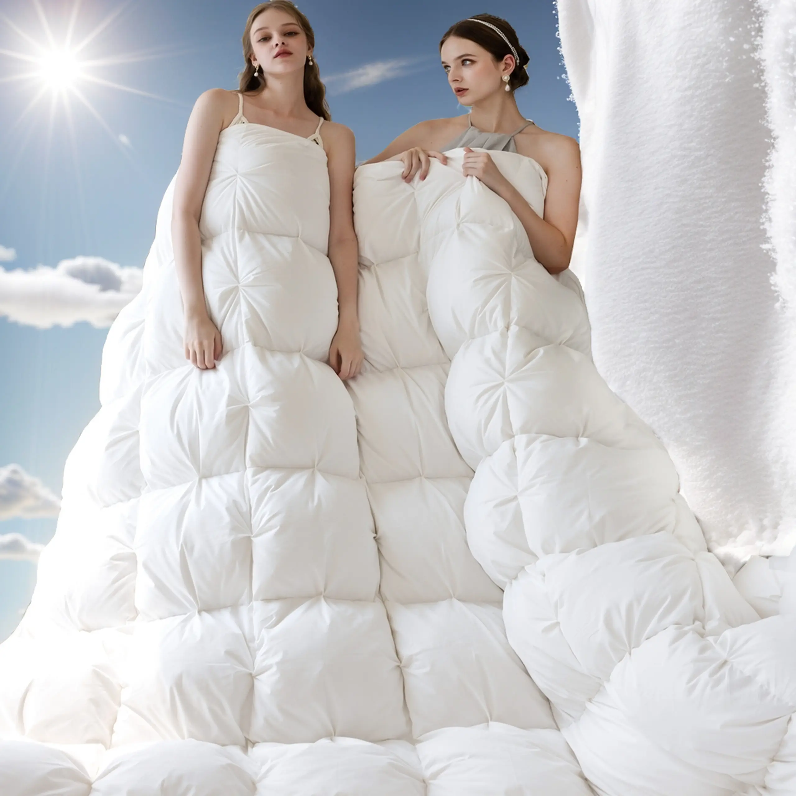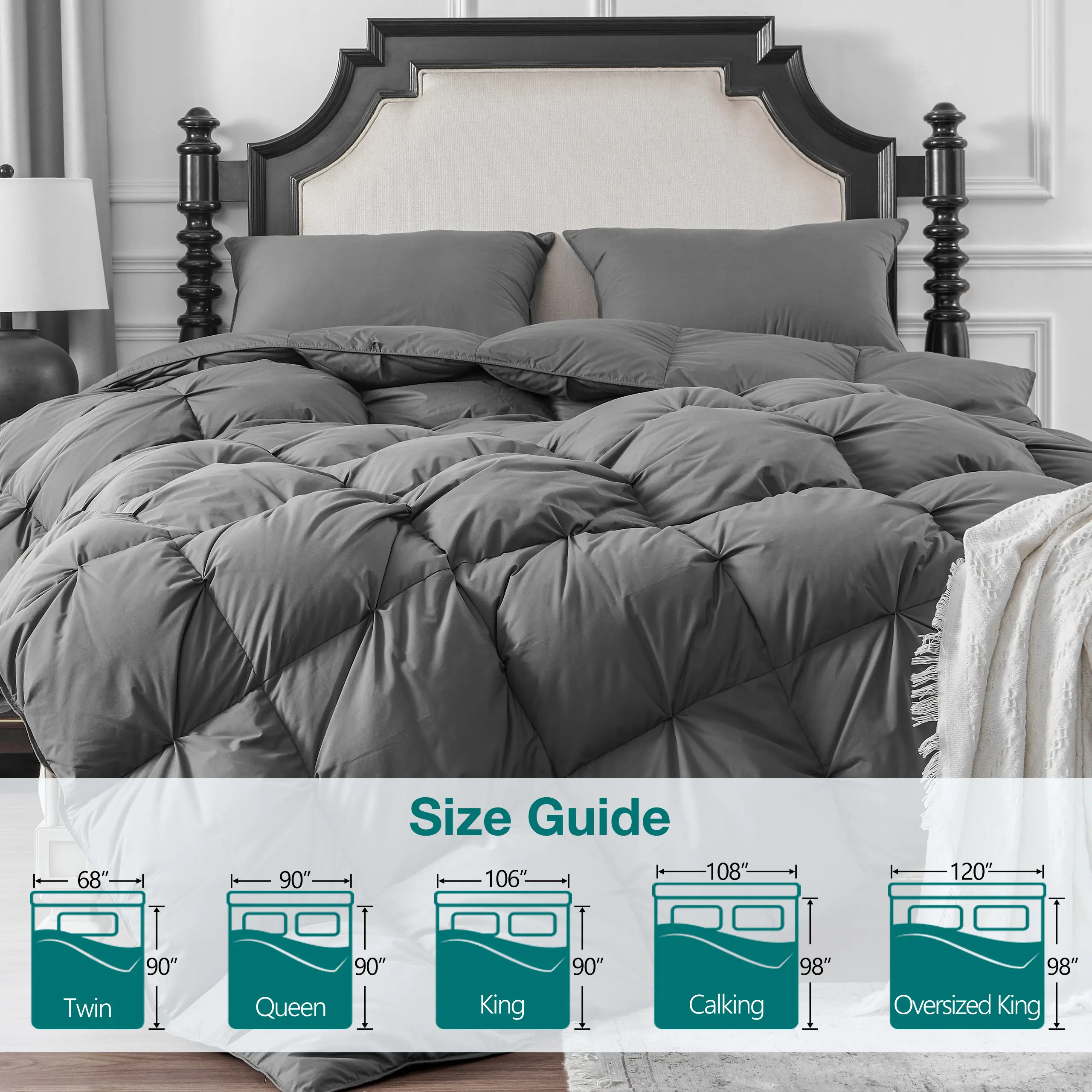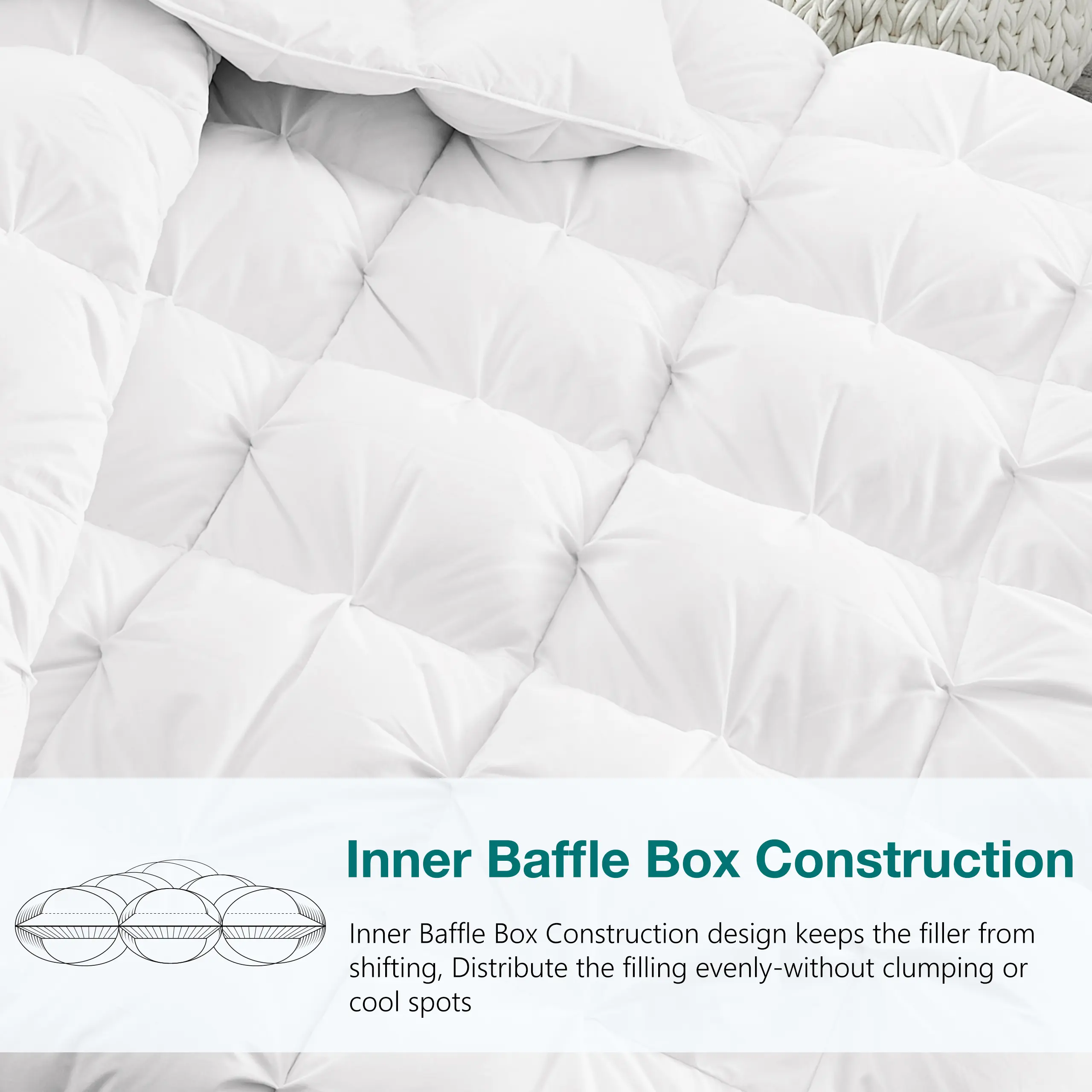 KAKABELL Luxurious Goose Down Comforter Soft Pinch Pleat Feather All-Season Duvet Insert 100% Cotton Cover Hotel Bed Premium Baffle Box Gifts For Mom Puffed Quilt