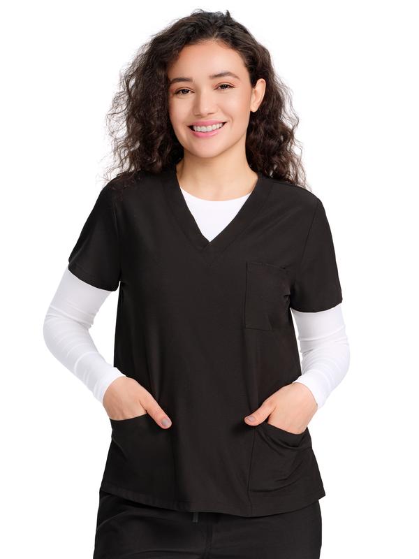 ·Minimalist Crew Neck: The rounded neckline sits neatly at the collarbone, delivering a clean, polished look that layers easily under scrub tops or jackets