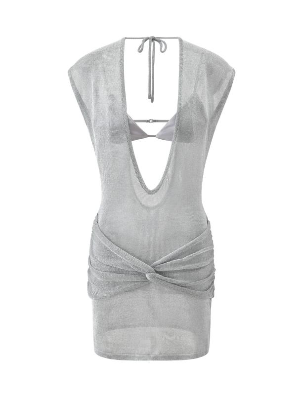 · Dazzling silver true knit mini dress