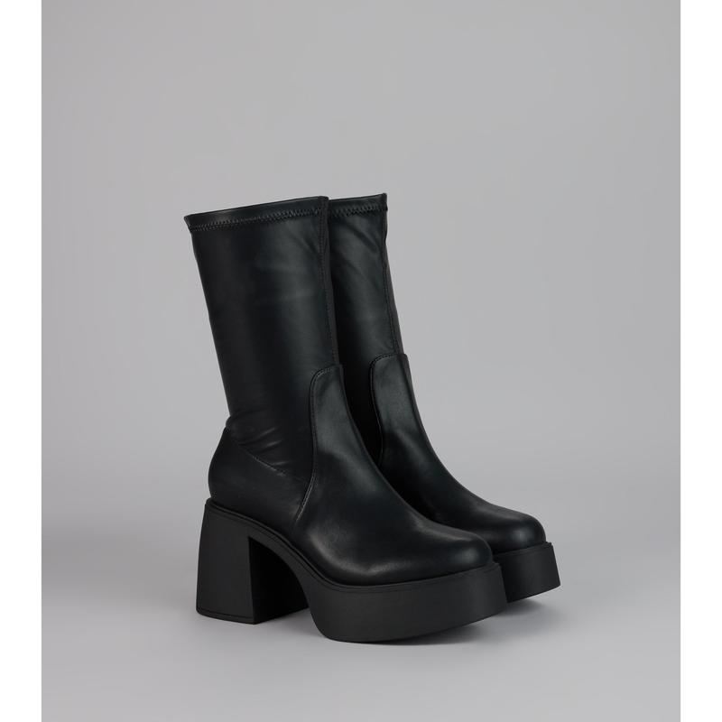 These platform ankle booties bring instant attitude â a sleek, fitted shaft, chunky block heel, and a platform that gives you height without the wobble. Theyâre the go-to for nights out, downtown strolls, or any look that needs a little extra edge with zero effort required.