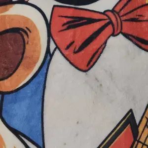The blanket is cute but it looks like the ink ran in spots making the blanket look dirty