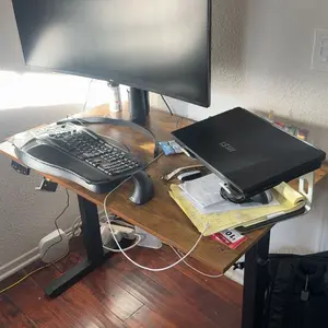 The standing desk provides generous room for your monitor, keyboard, and other work essentials—without taking up too much space. It's a perfect fit for home offices, bedrooms.