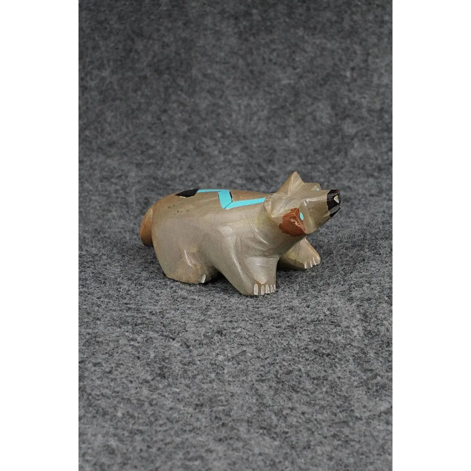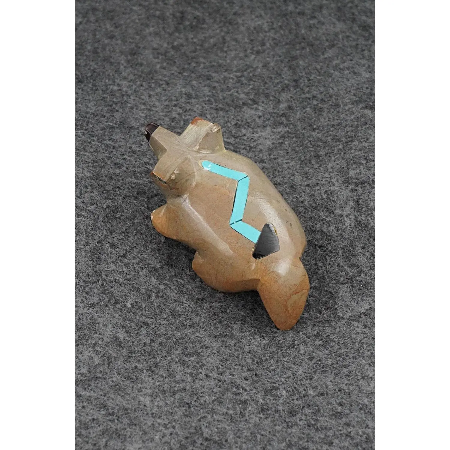 This badger with arrow inlay design Zuni fetish was carved by Enrike Leekya. The bottom is signed EL.