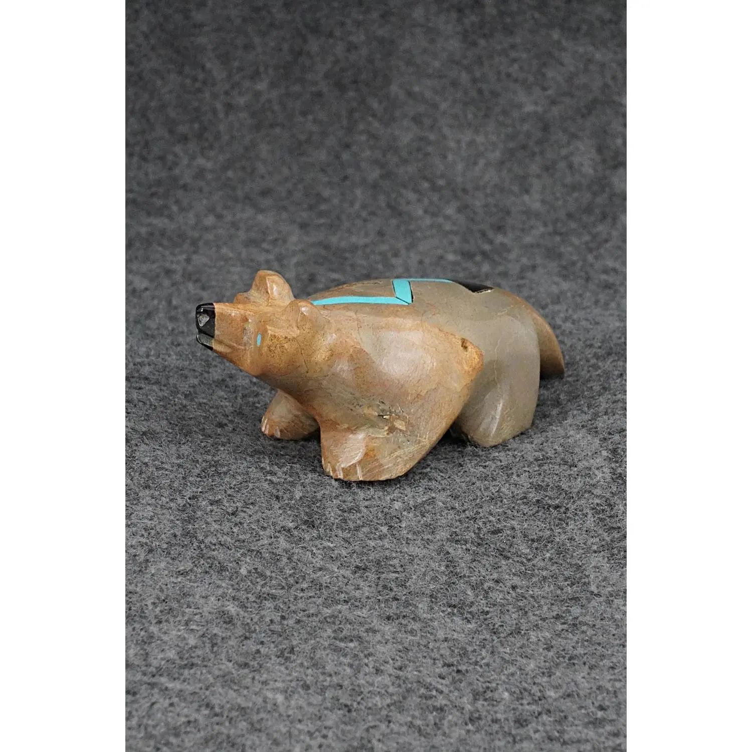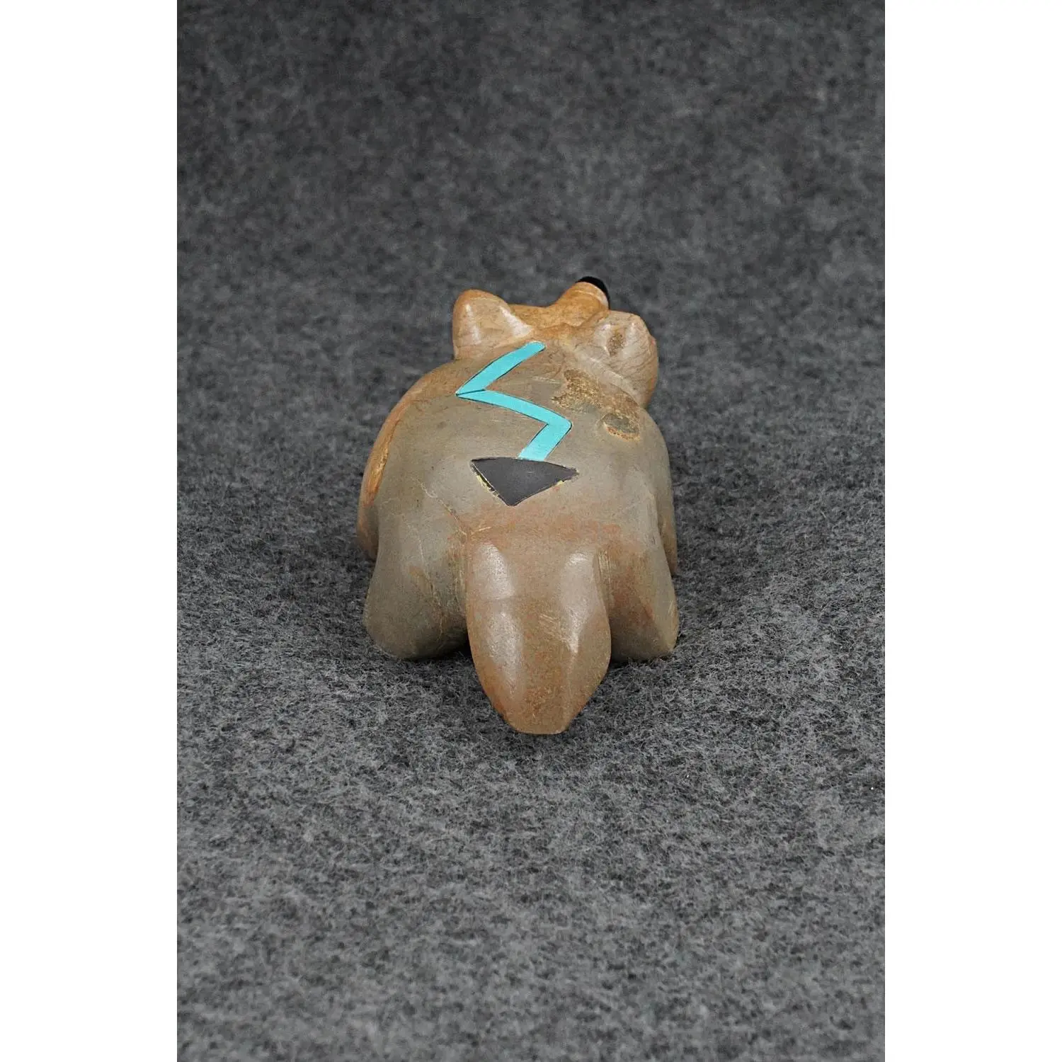 This badger with arrow inlay design Zuni fetish was carved by Enrike Leekya. The bottom is signed EL.