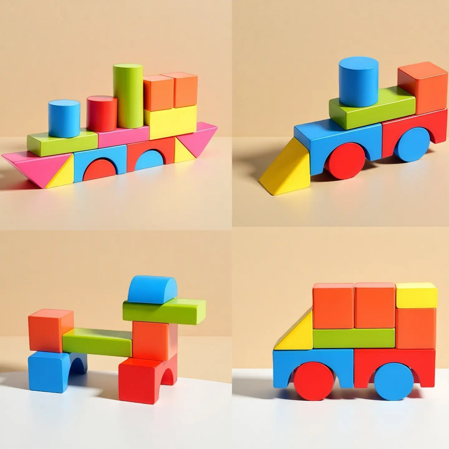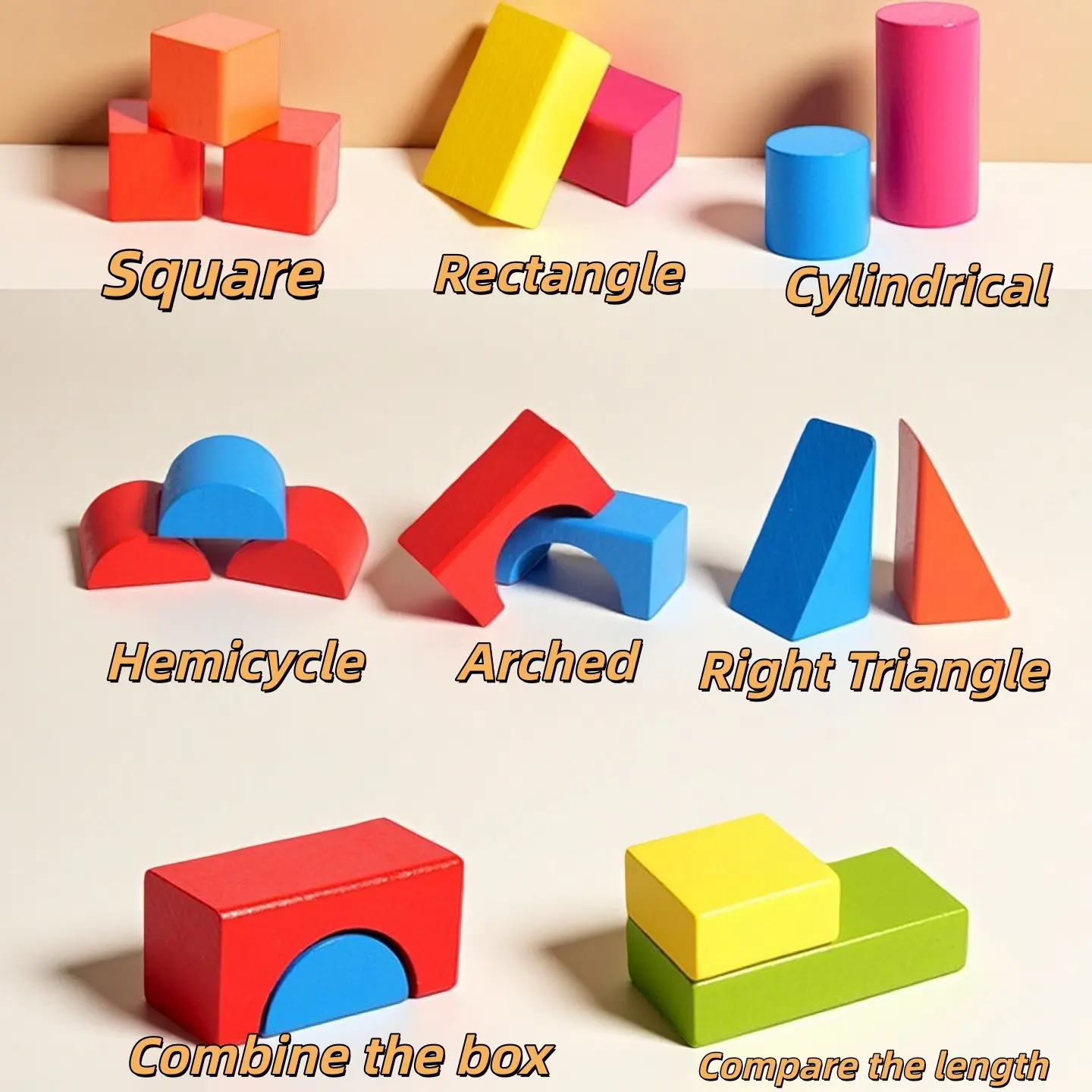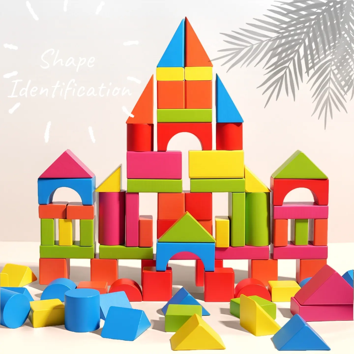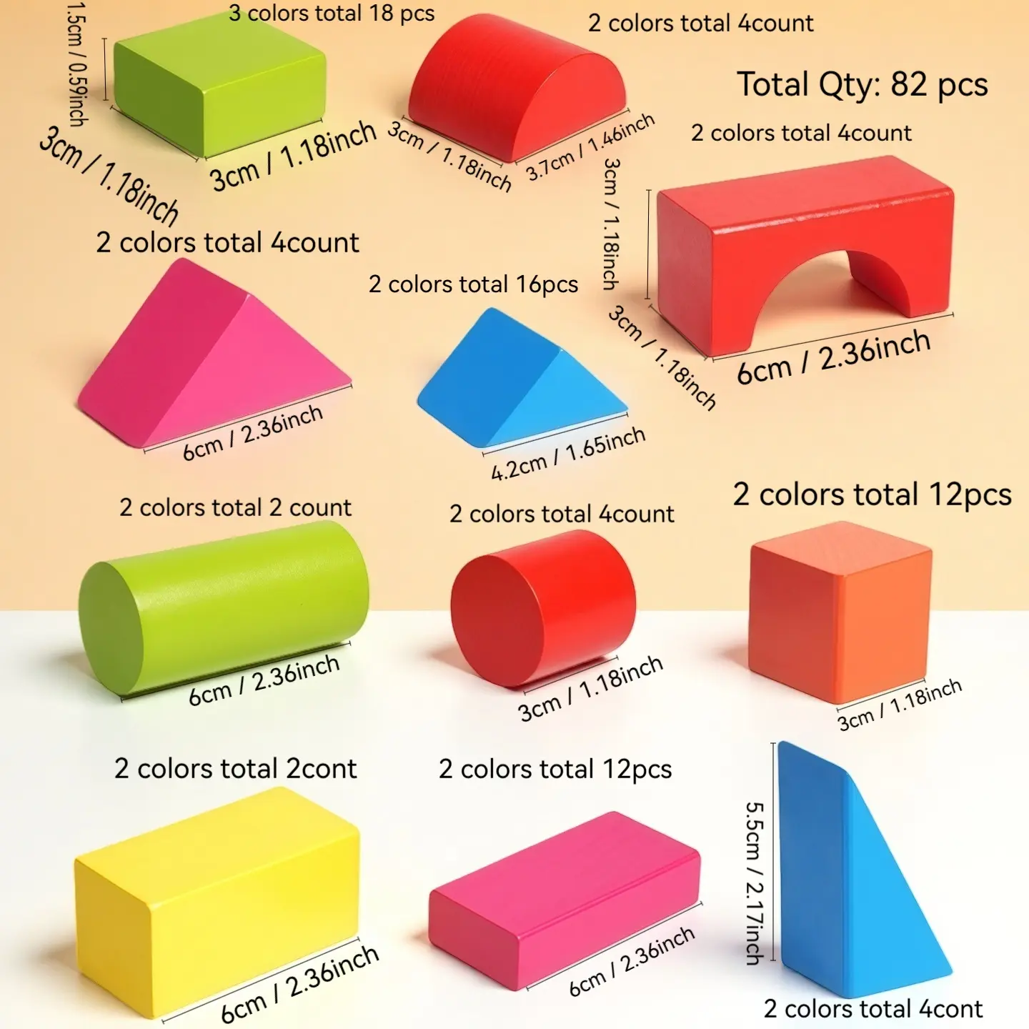 82-Piece Colorful Stem Building Blocks Set, Early Education Wooden Toy for Kids, Geometric Shape Recognition, Creative Play, Perfect Gift