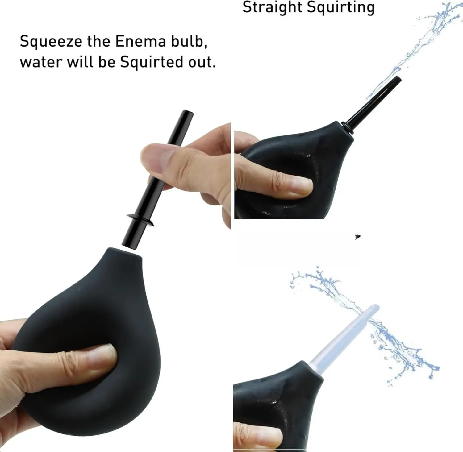 ·Assemble the tube with tips. Insert gently to the anus and squeeze