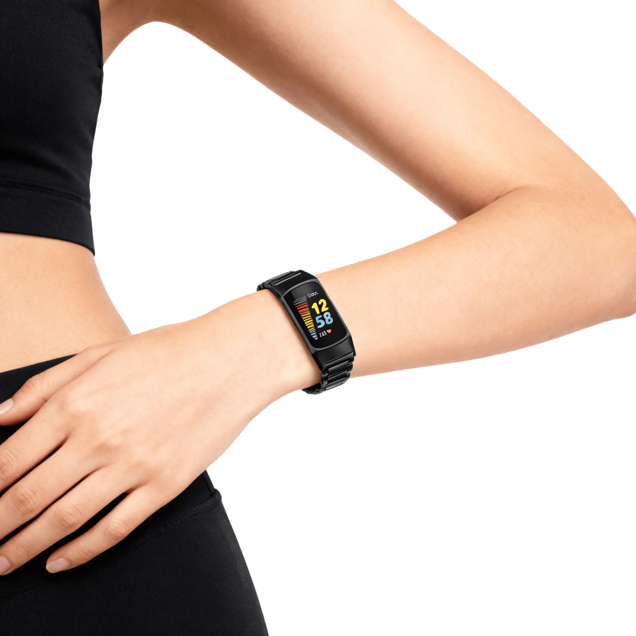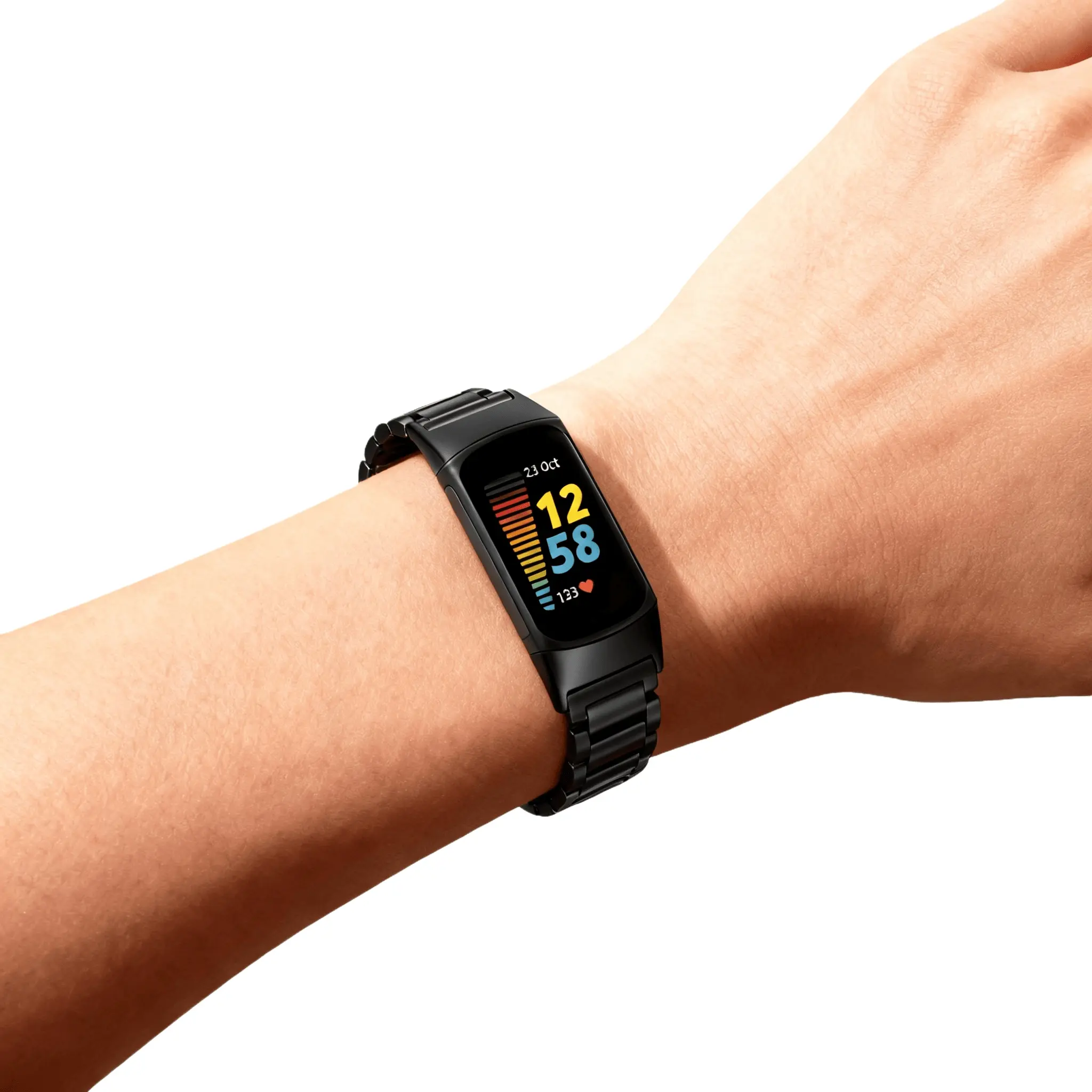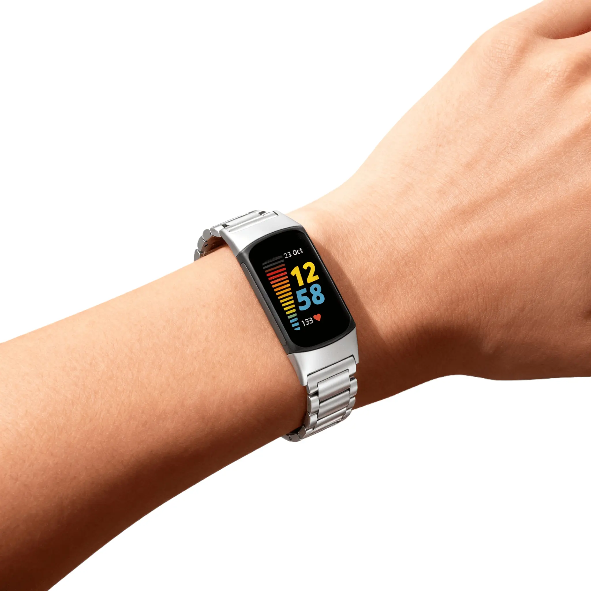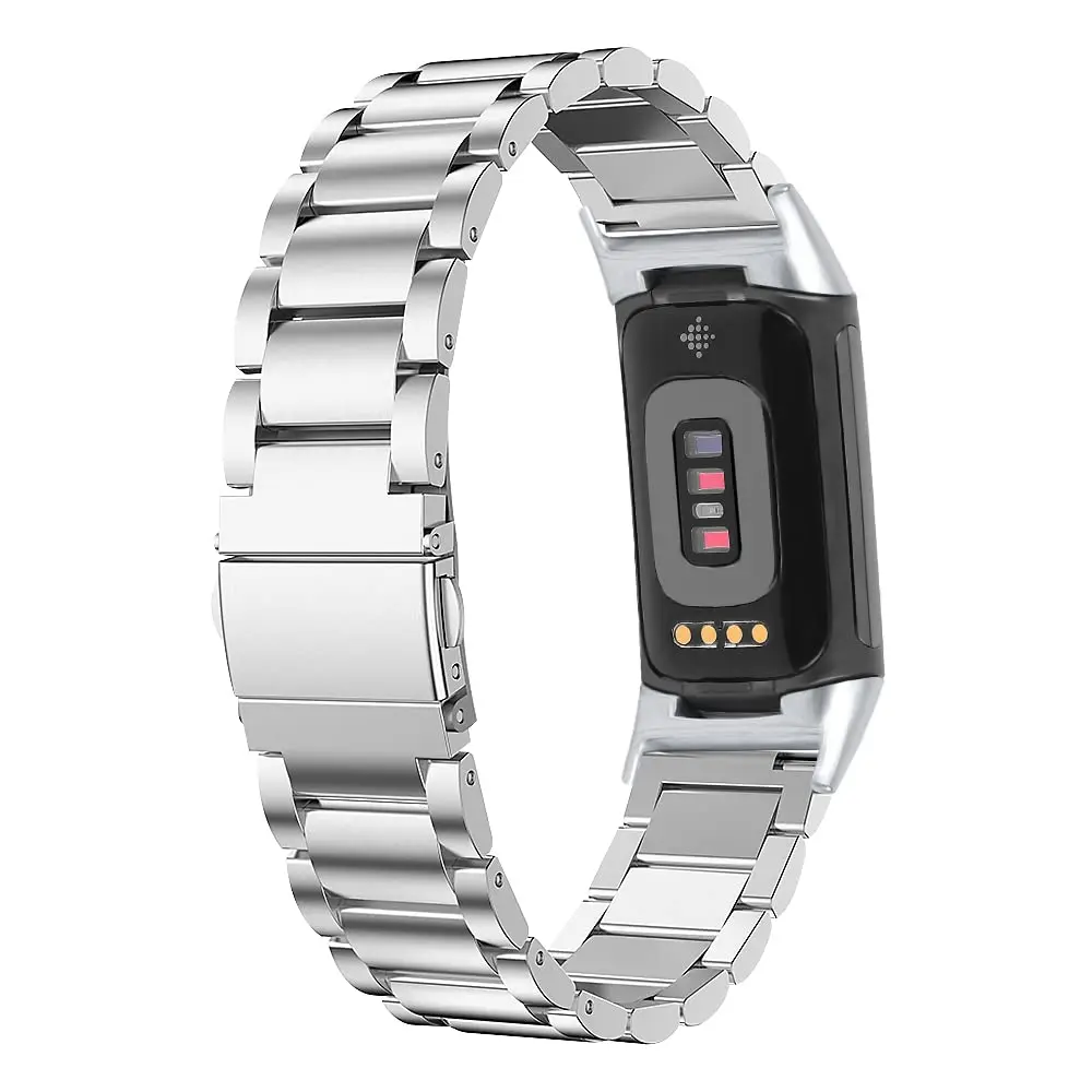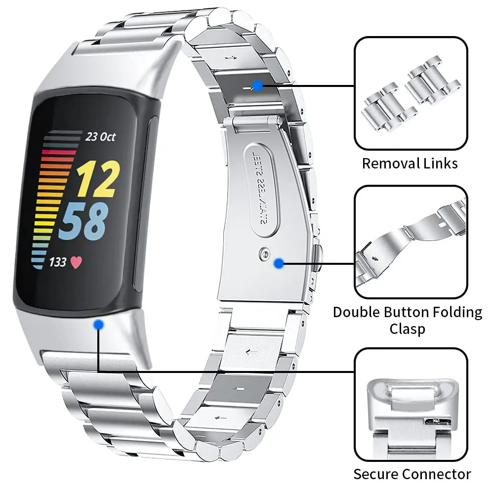 Metal strap compatible with Fitbit Charge 6/Charge 5 activity tracker, solid stainless steel women's and men's wristbands, metal watch chain strap, 6 metal stainless steel straps, 1 piece