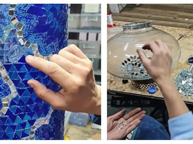 ·100% handmade, this lamp features original colored blown glass and mosaic design. 🎨